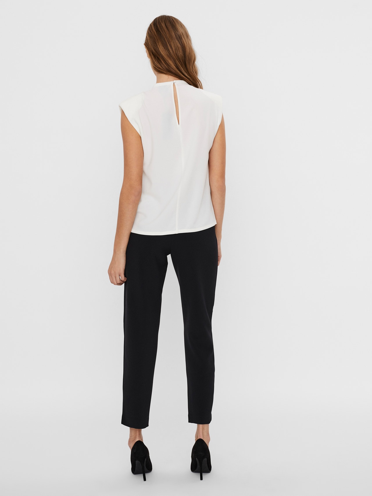 Top med skulderpuder og keyhole-åbning i ryggen. Denne top er lavet af et blødt og let materiale. Style den med jeans for et ubesværet look.