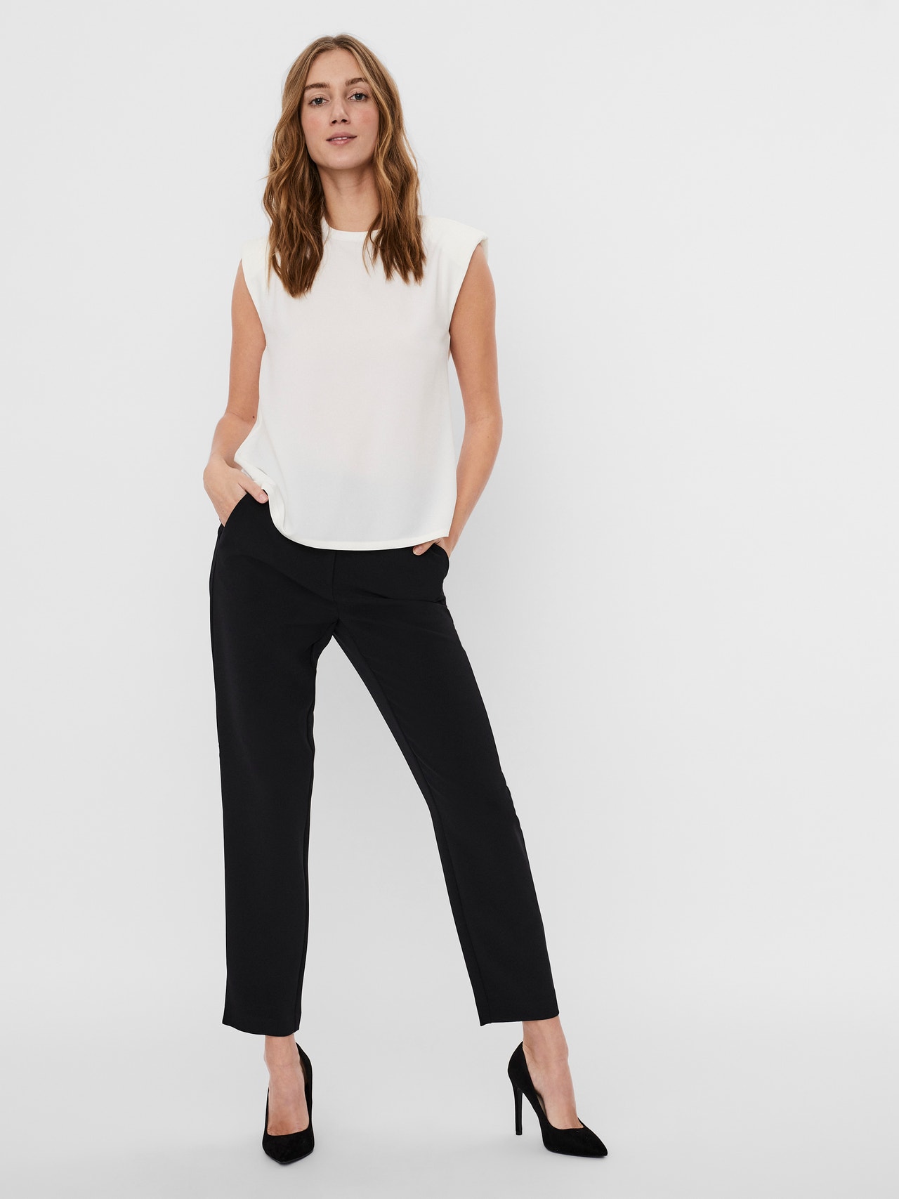 - Top med skulderpuder.