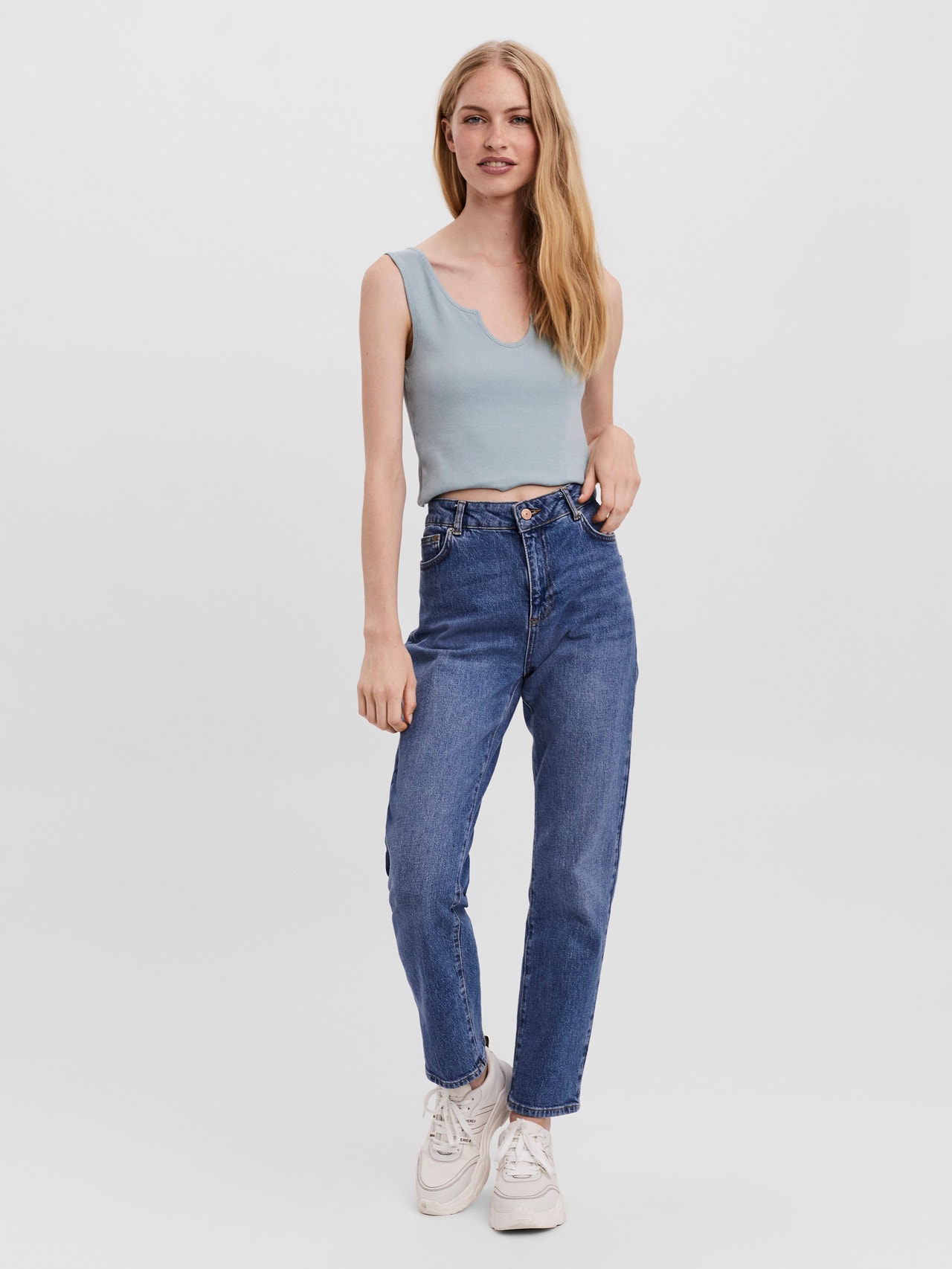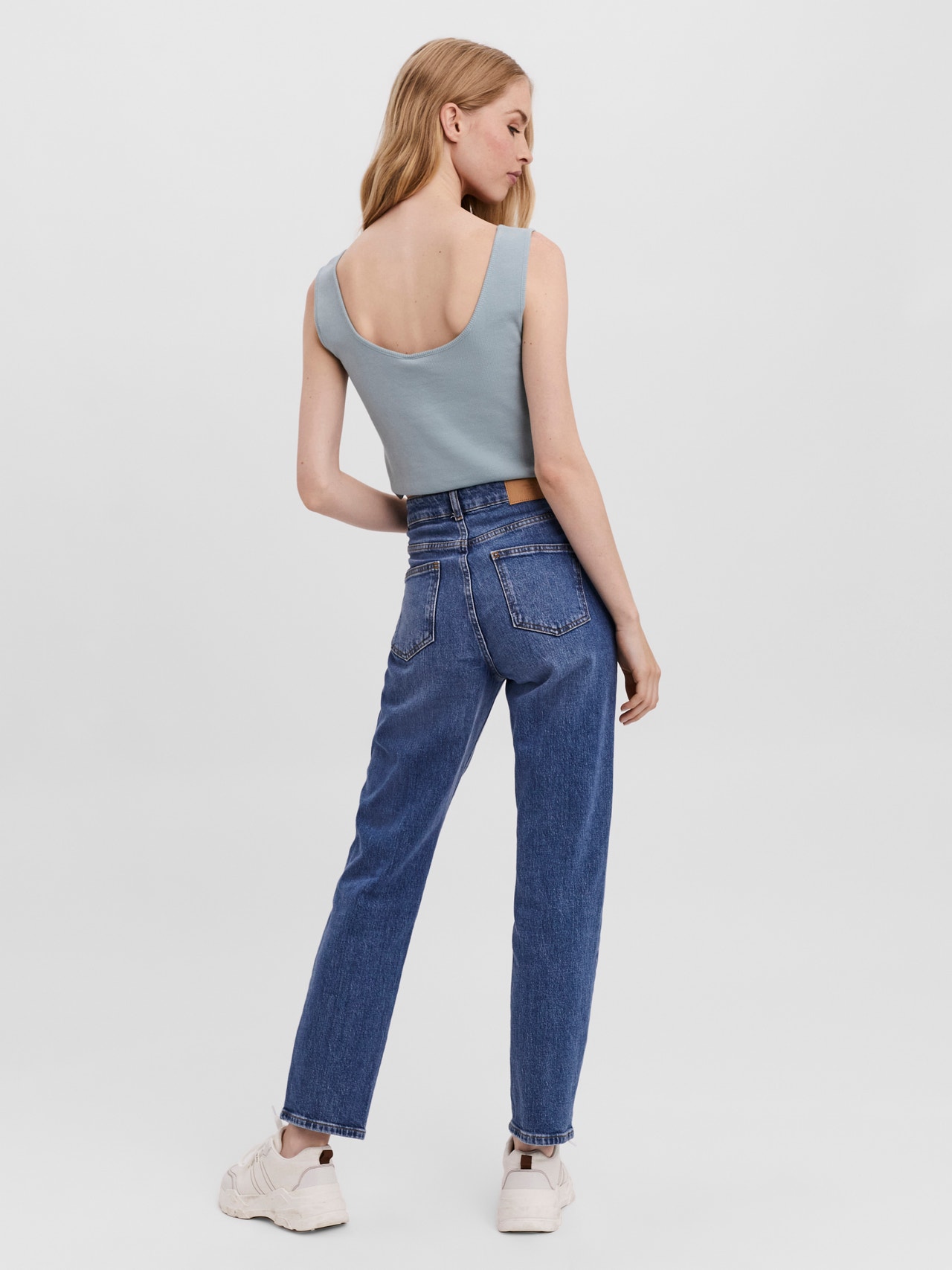 Crop top with wide shoulder straps, and a u-neckline. Style this 90s-inspired crop top with some high waisted mom jeans and a cute pair of heeled mules for a fun and stylish everyday look.