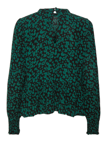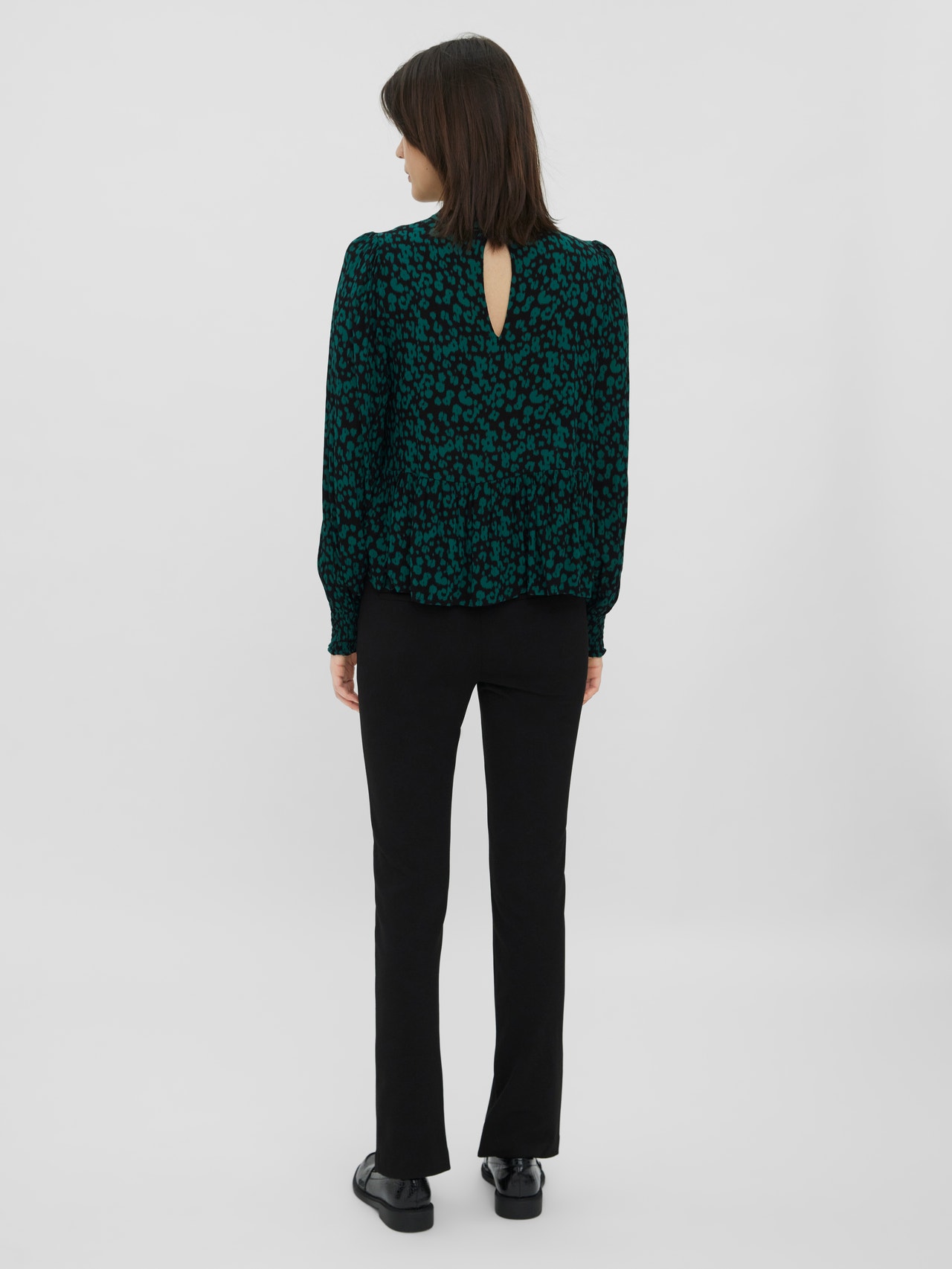 Long-sleeved top with a cutline at the waist, keyhole closure in the back, and a smock detail on the cuffs. Style this cute top with a skirt and a pair of long boots for a stunning look.