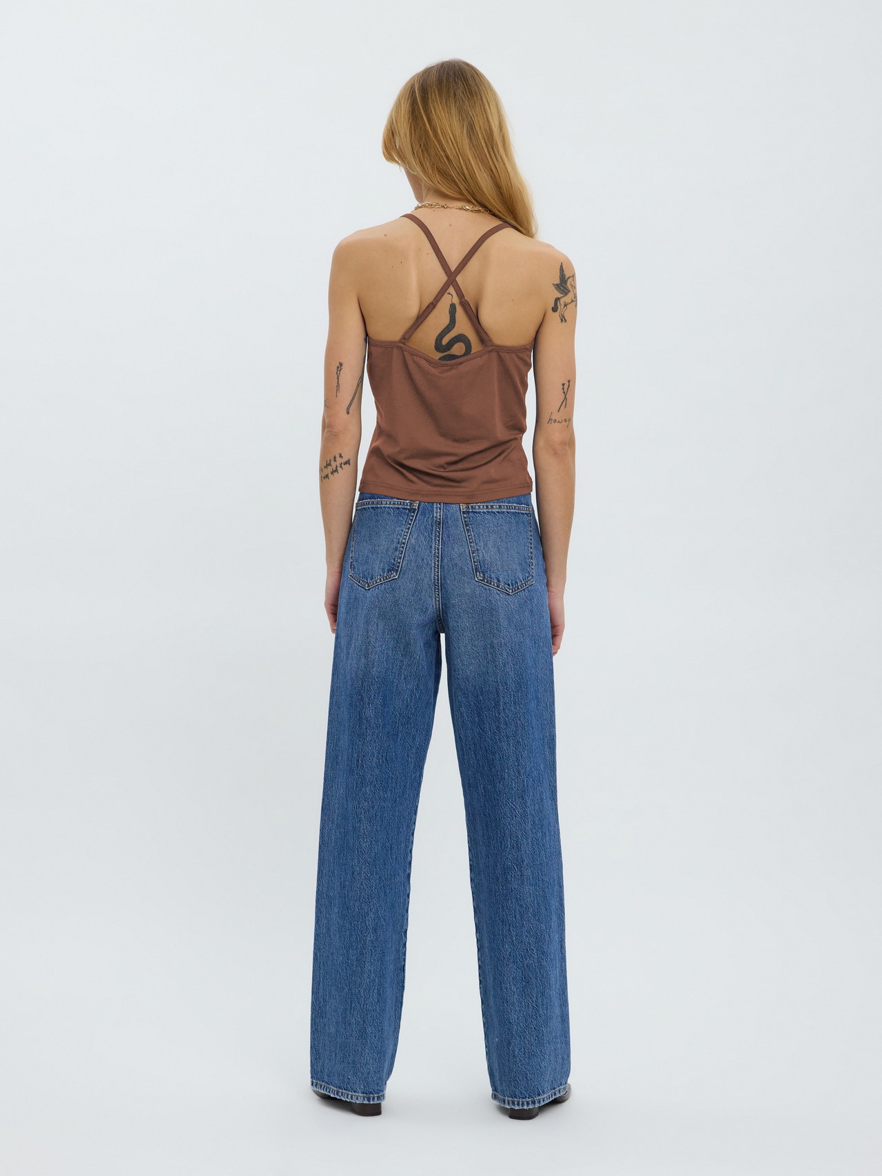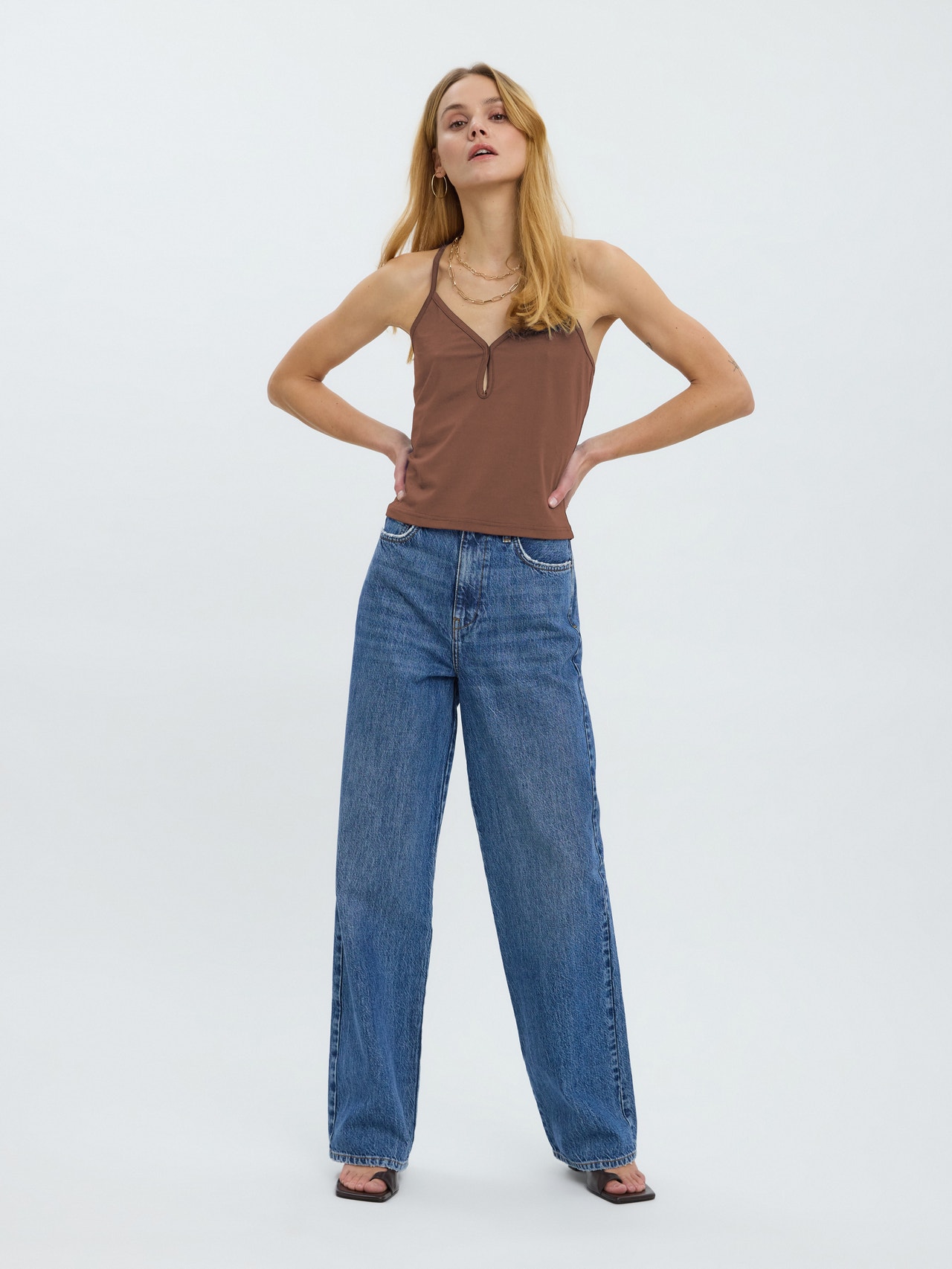 Singlet top with adjustable straps, keyhole detail in the front, and a V-neck. Style this stunning top with a pair of jeans and your favourite heeled boots for a cute look.