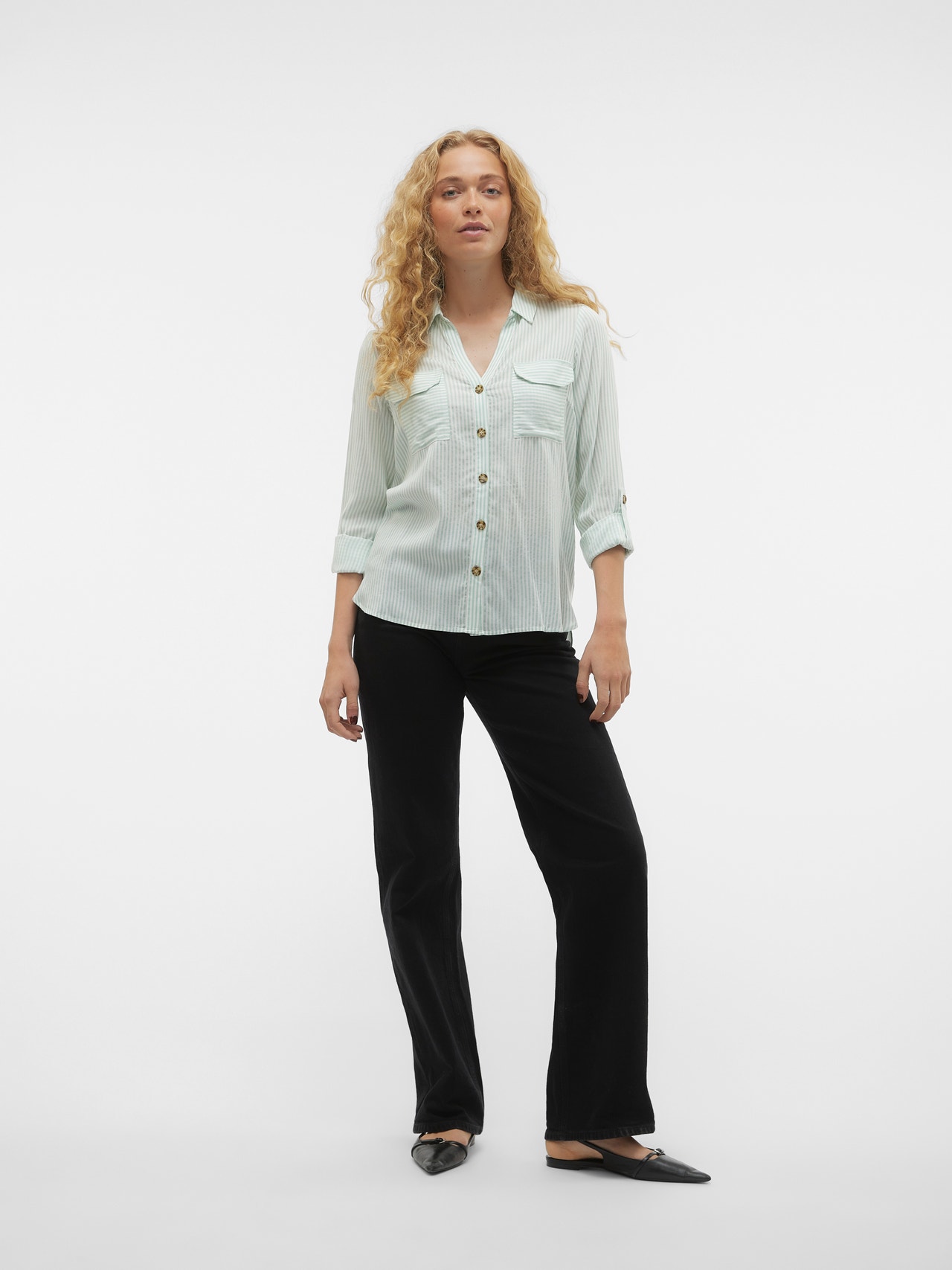 Denne skjorte er en chik og alsidig tilføjelse til din garderobe, da den kan bæres alene såvel som åben med en simpel top under. Brug den med klassiske jeans og en simpel T-shirt for at få et cool hverdagslook, eller gør den finere med et par bukser og højhælede.