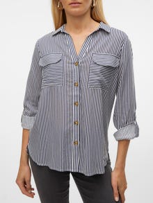 Denne skjorte er en chik og alsidig tilføjelse til din garderobe, da den kan bæres alene såvel som åben med en simpel top under. Brug den med klassiske jeans og en simpel T-shirt for at få et cool hverdagslook, eller gør den finere med et par bukser og højhælede.