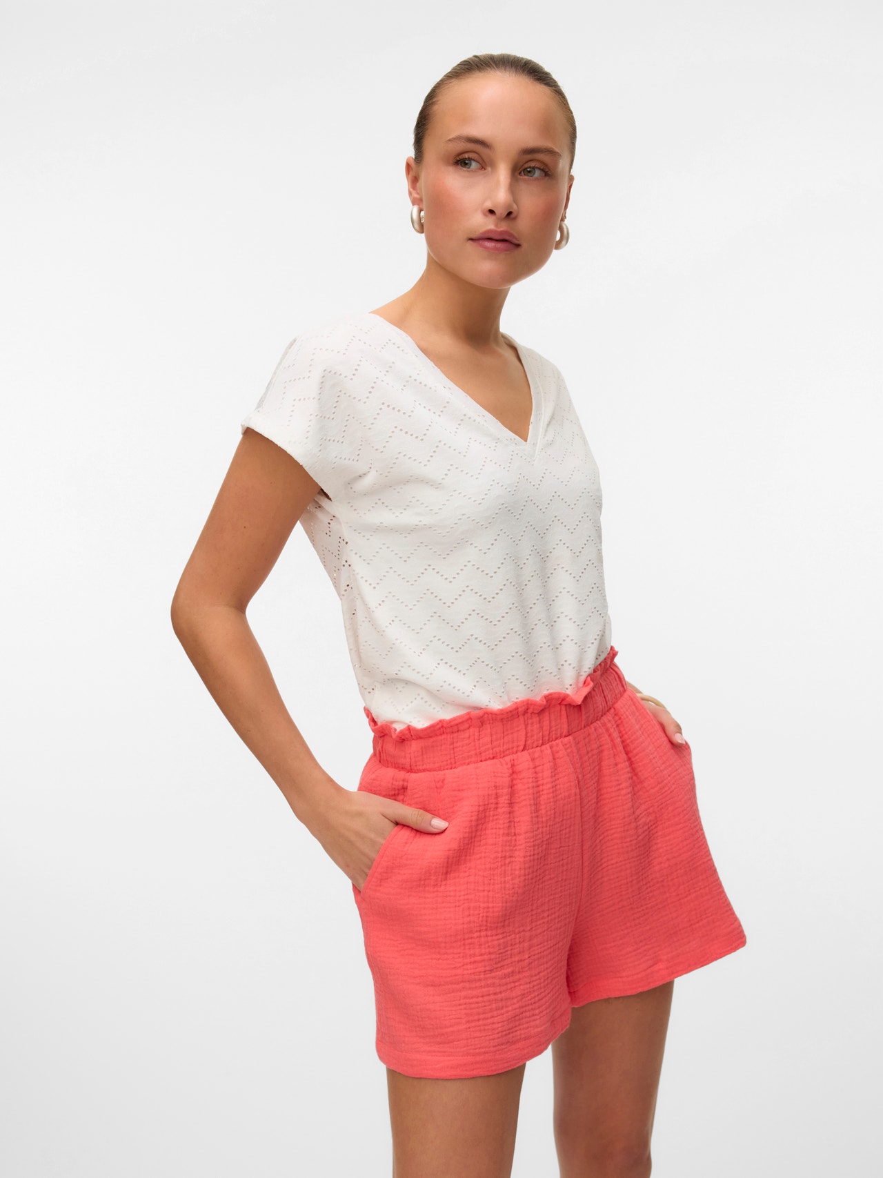 Cool og luftig. Shorts er den ultimative sommervare, og alle kvinder bør have et par. Disse moderigtige shorts vil med garanti få fokus, når vejret er dejlig og varmt. De kan nemt gøres finere eller mere afslappede afhængigt af din stil og dit humør.