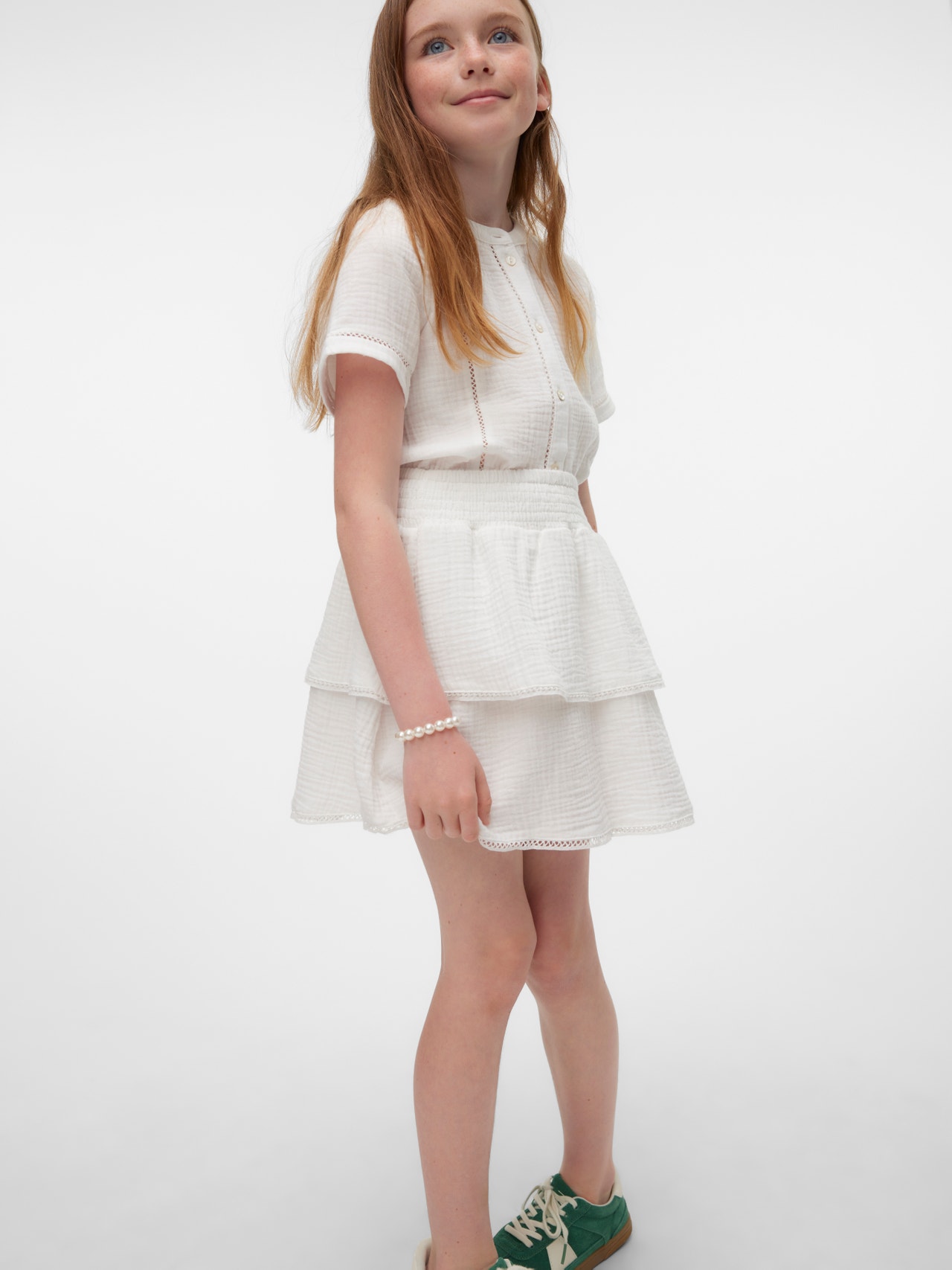 En nederdel vil give din pige mulighed for at bevæge sig omkring, samtidig med hun ser sød og stilrigtig ud. Hvad mere har man brug for? Brug den med en top på varme sommerdage eller en strik og strømpebukser på koldere dage..