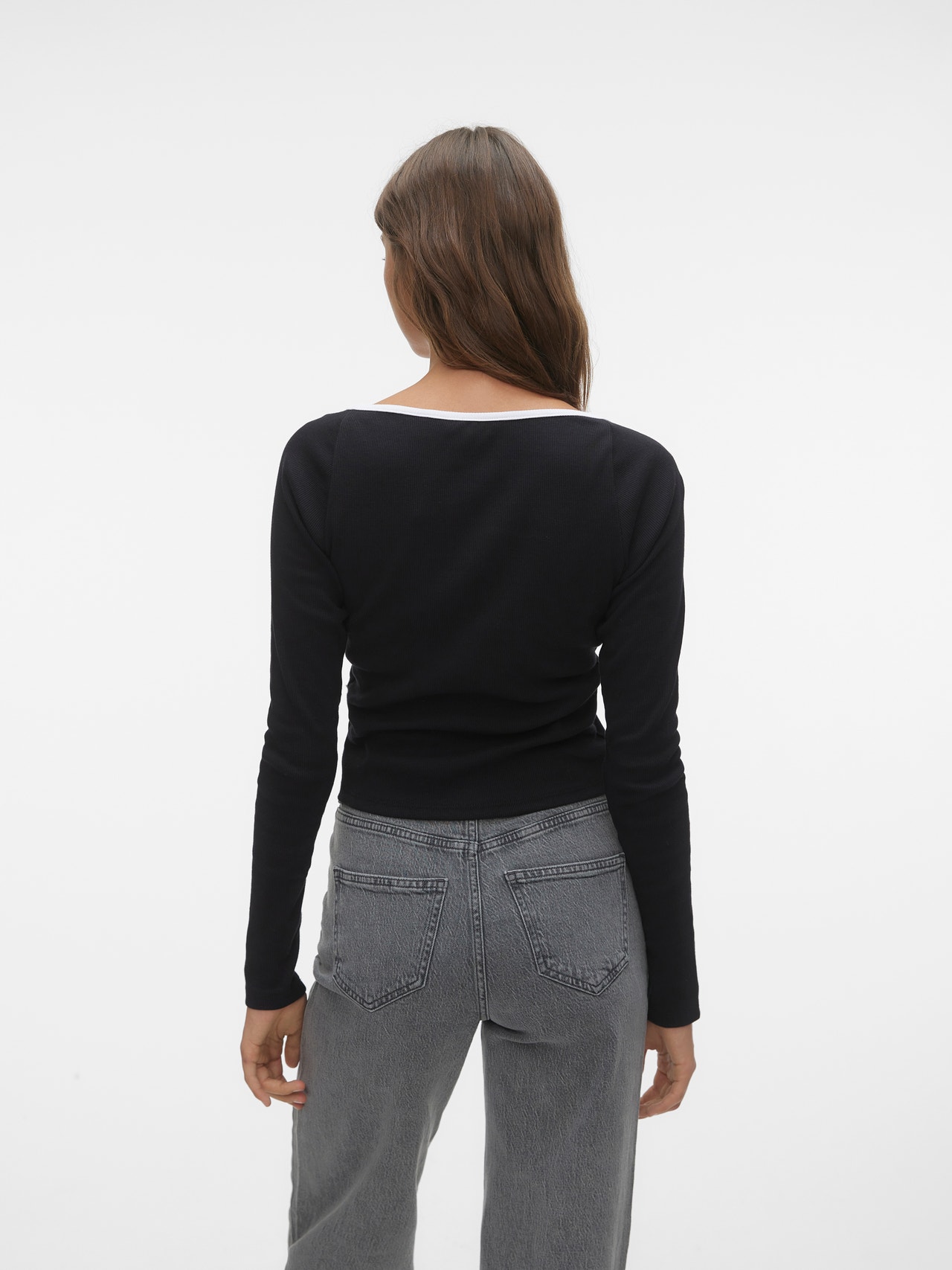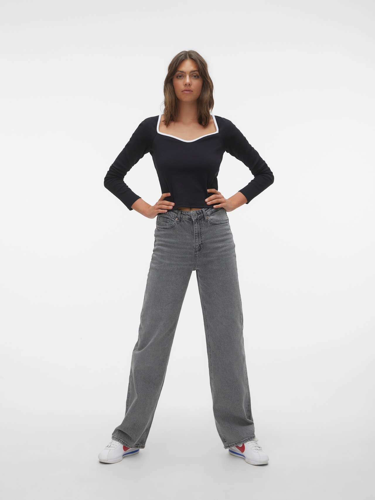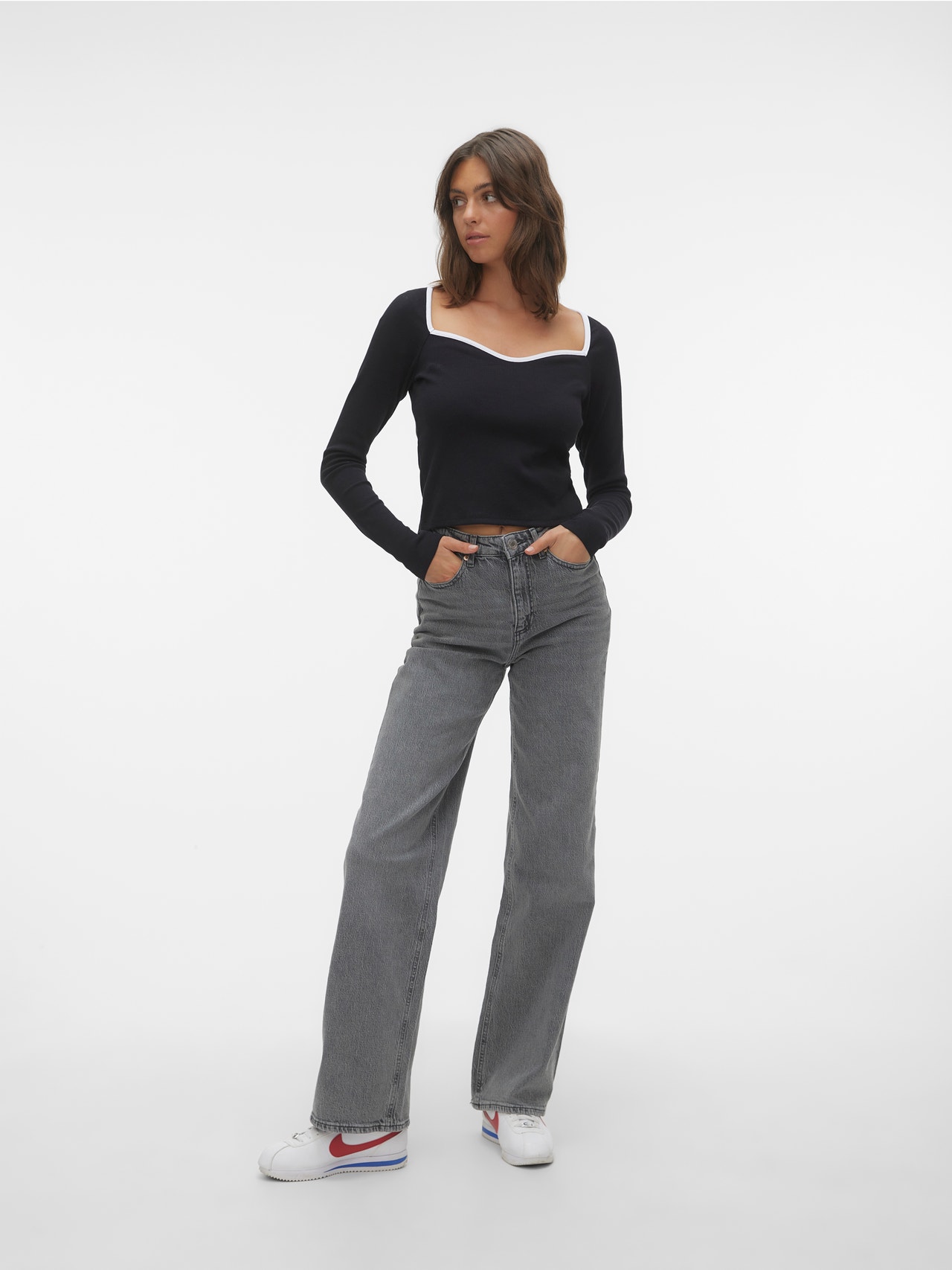 Basisvarer vil uundgåeligt findes i enhver garderobe. Vores basistoppe hjælper med at binde et outfit sammen, og denne top er ingen undtagelse. Brug den med en skjortejakke over, et par afslappede mom-jeans og chunky støvler, og du har et afslappet og cool hverdagslook.
