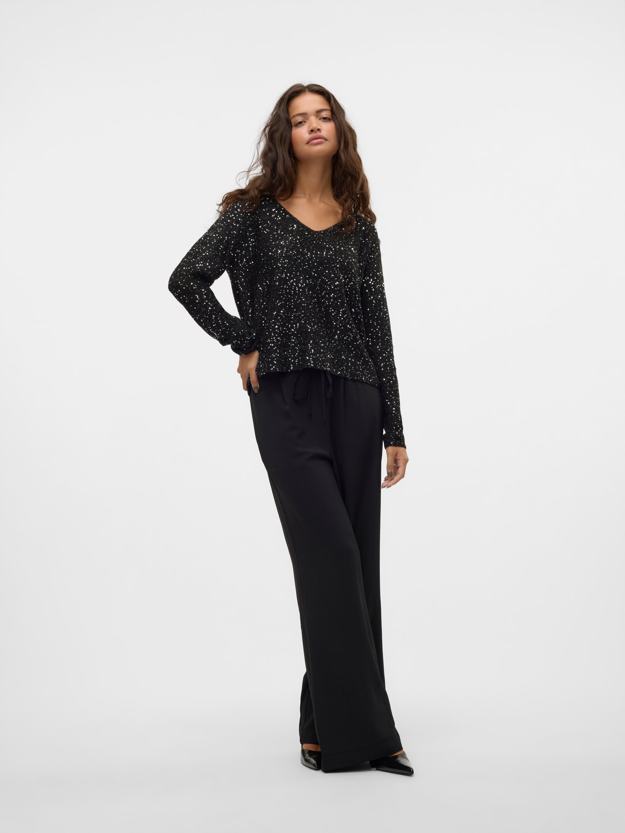 - Hals : V-hals