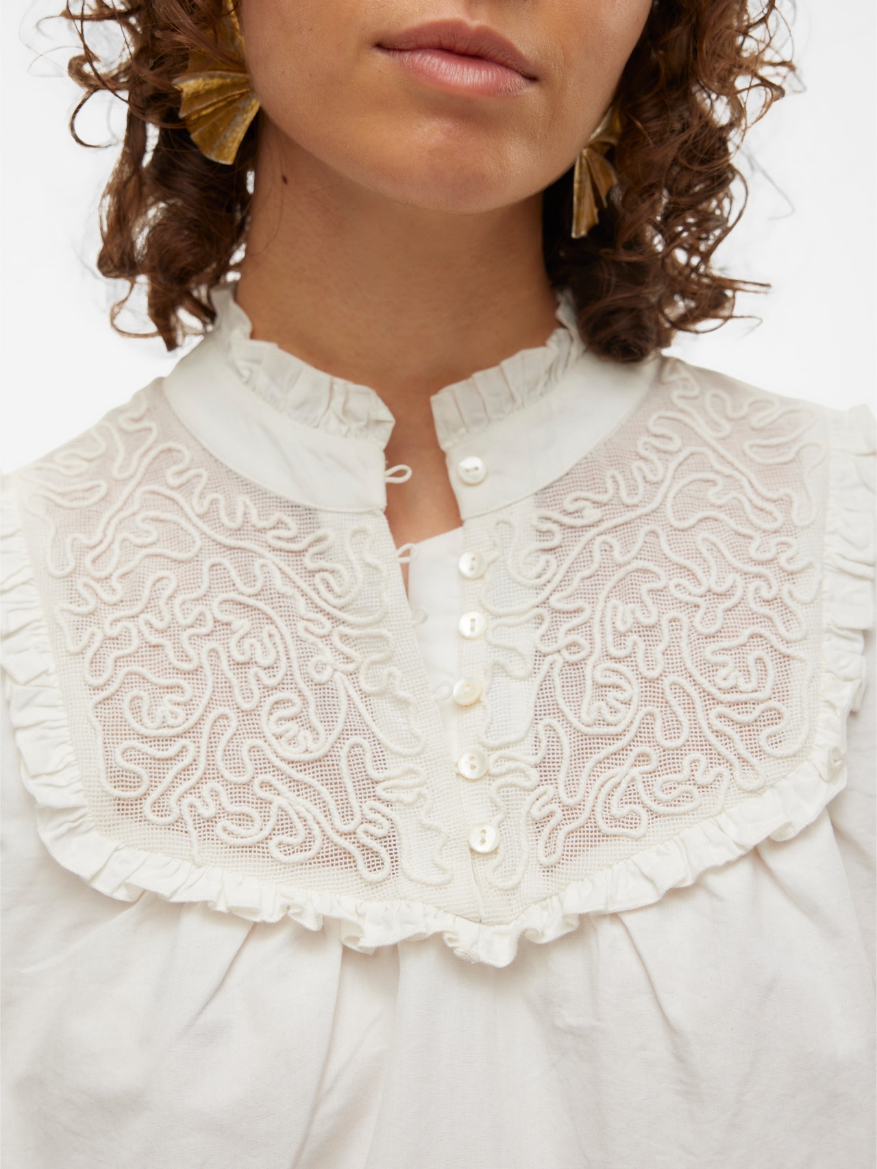 - Detaljer : Knapdetalje, Broderet detalje, Flæser