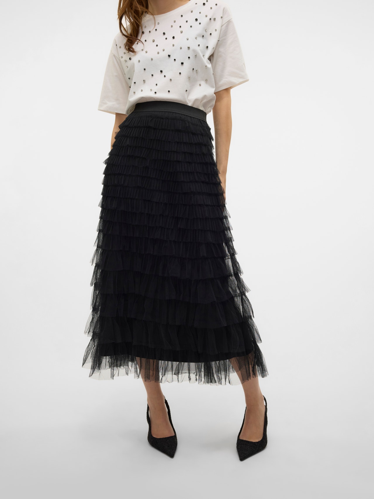 Skal du i byen? Så har vi ideen til det perfekte outfit. Brug din festnederdel med en sød top, højhælede og et par statement-smykker - og voila!.