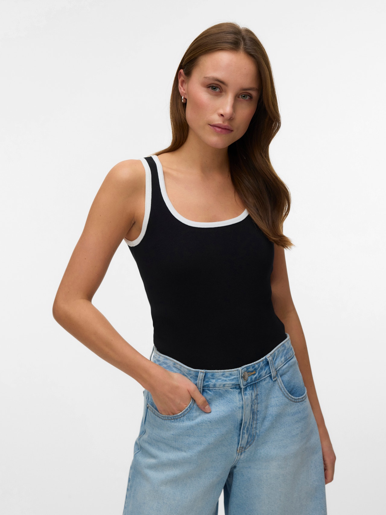 Basisvarer vil uundgåeligt findes i enhver garderobe. Vores basistoppe hjælper med at binde et outfit sammen, og denne top er ingen undtagelse. Brug den med en skjortejakke over, et par afslappede mom-jeans og chunky støvler, og du har et afslappet og cool hverdagslook.