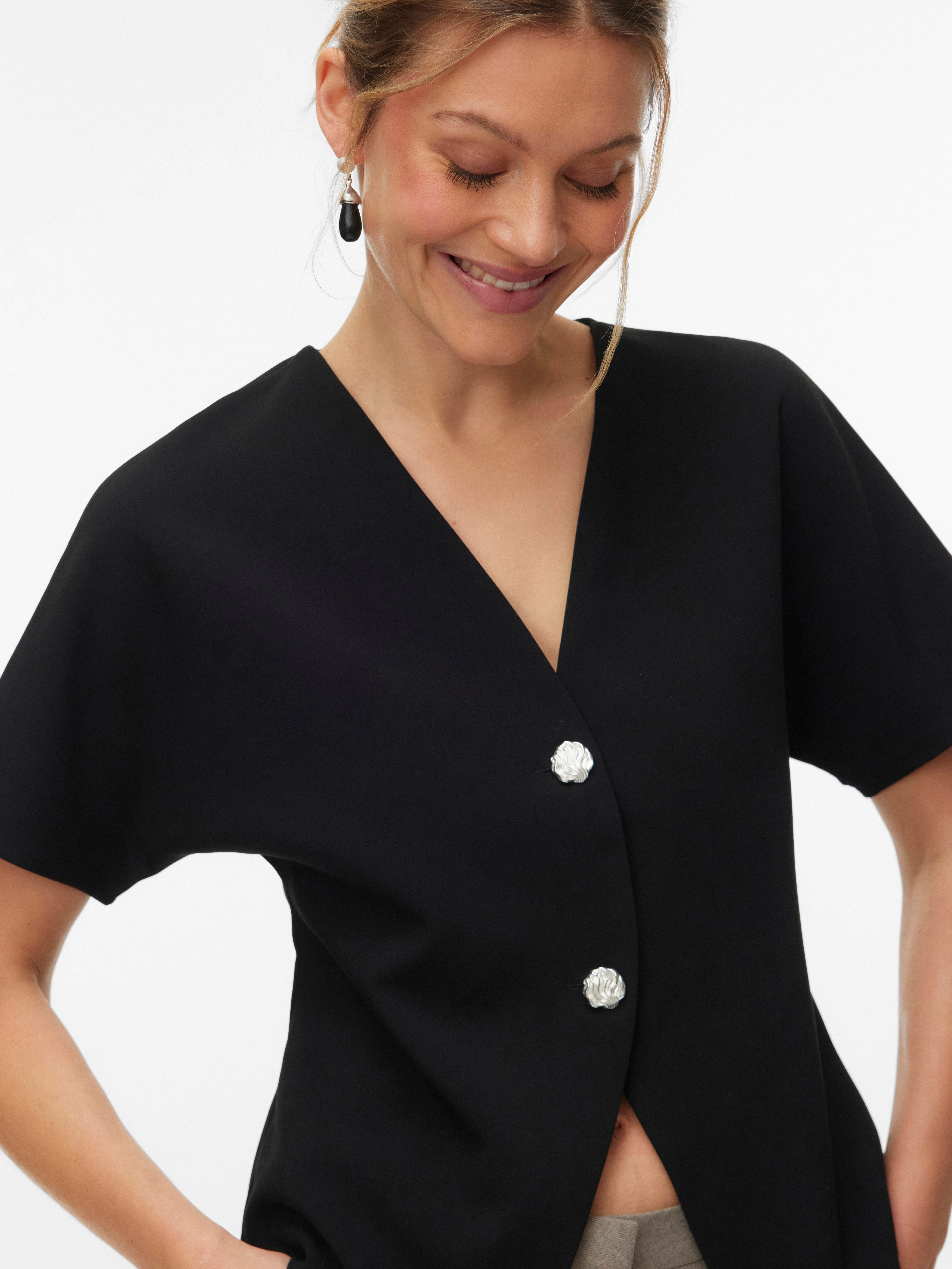 - Ærme : Korte ærmer