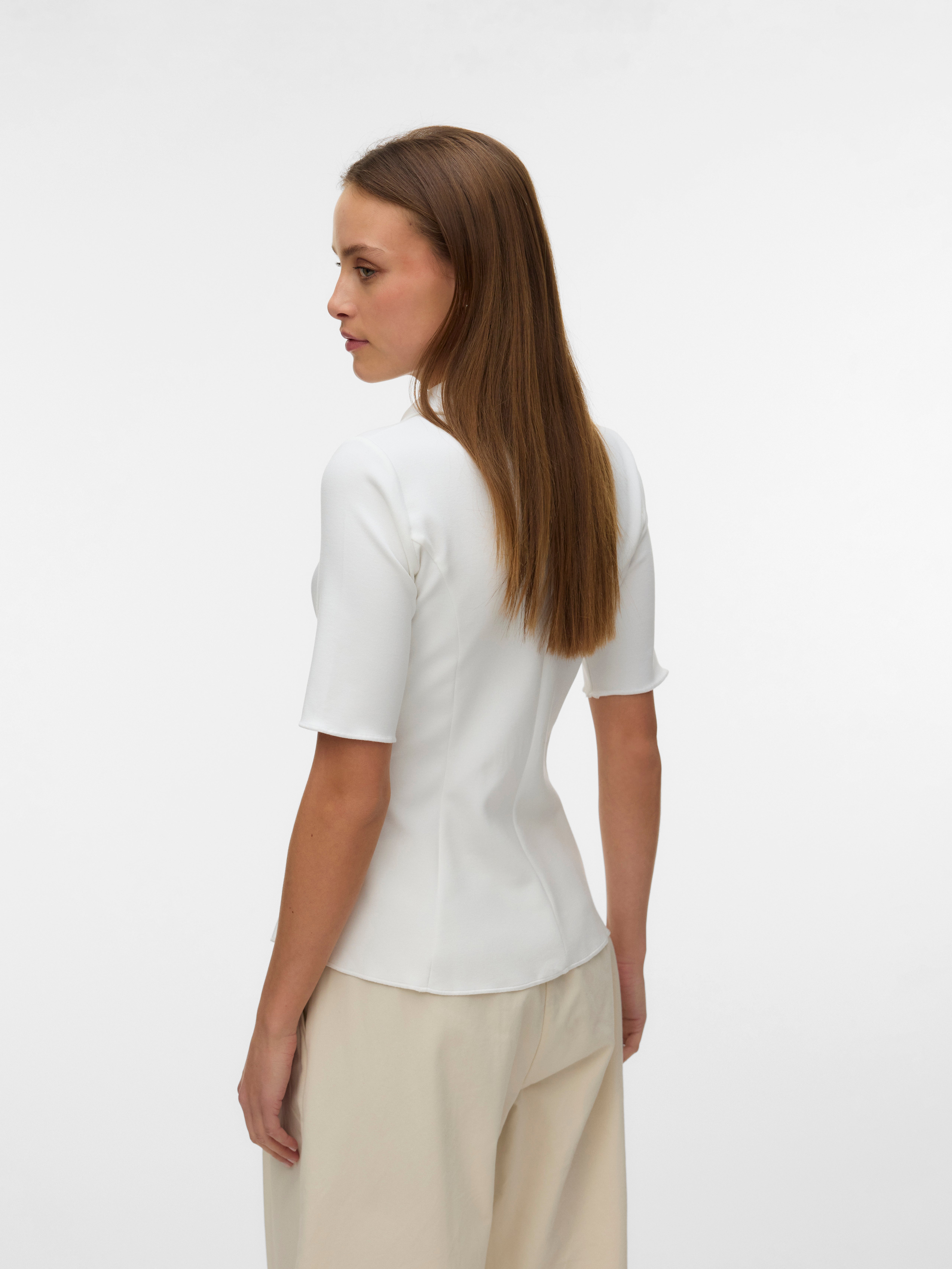 - Ærme : Korte ærmer
