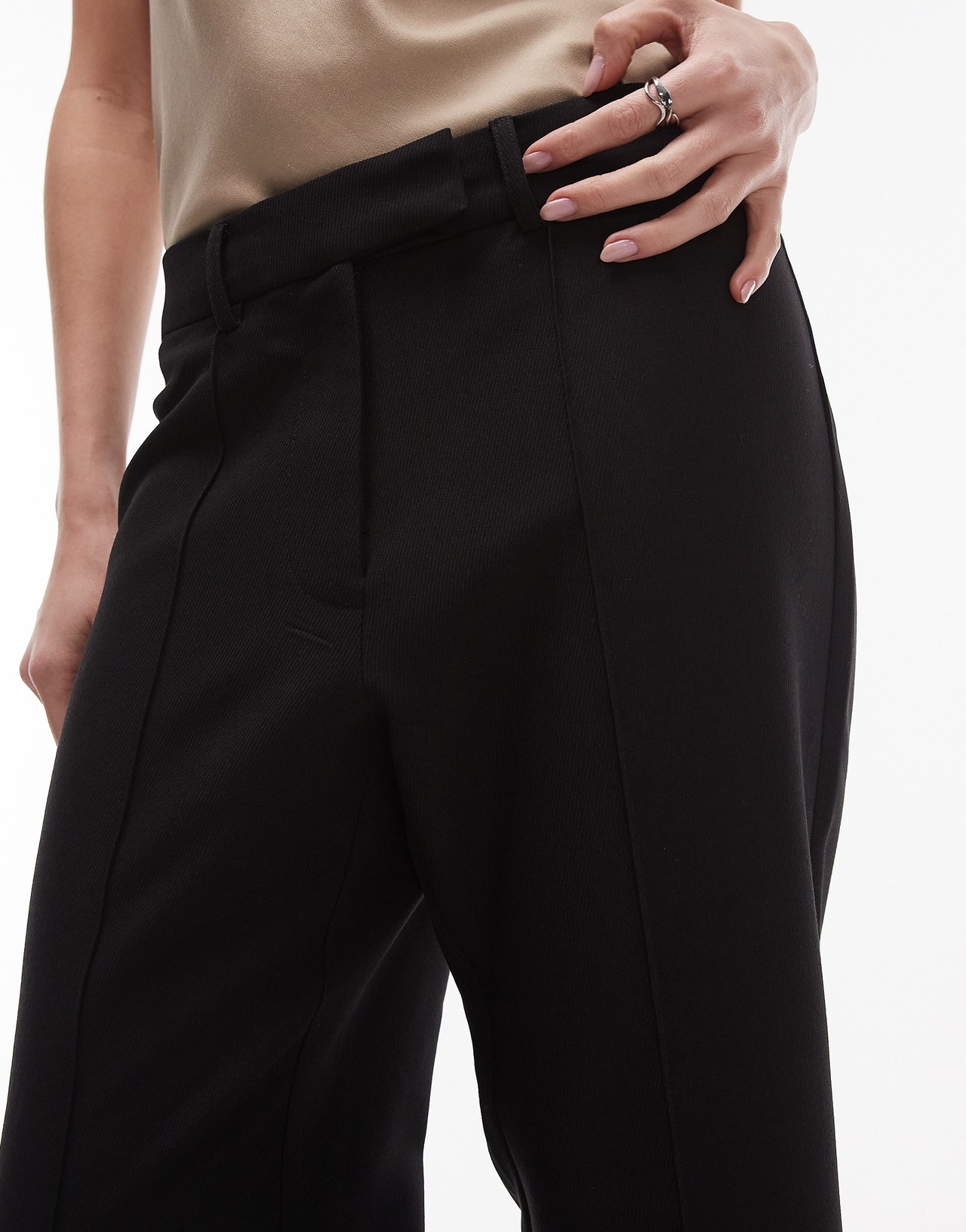 Topshop pintuck slim leg trouser in black - BLACK