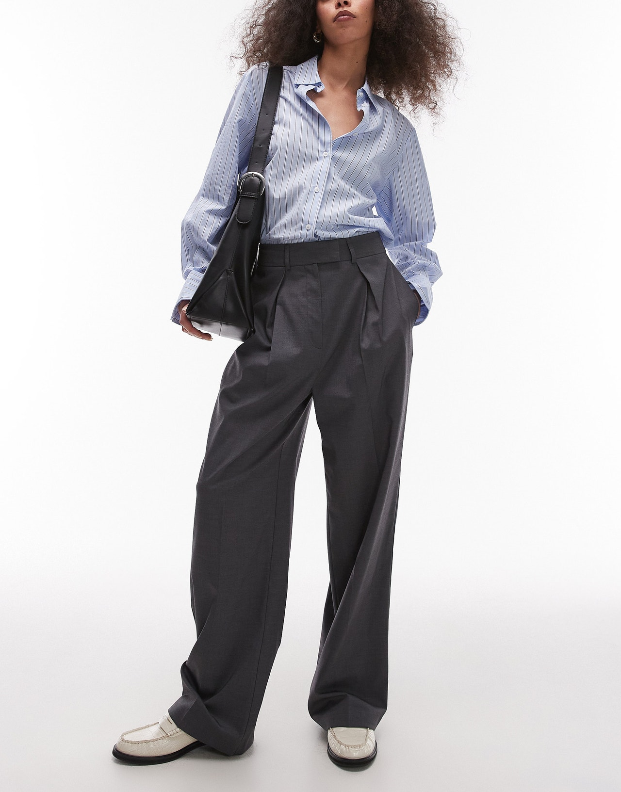 Topshop co ord wide leg tailored trouser in charcoal CHARCOAL - CHARCOAL