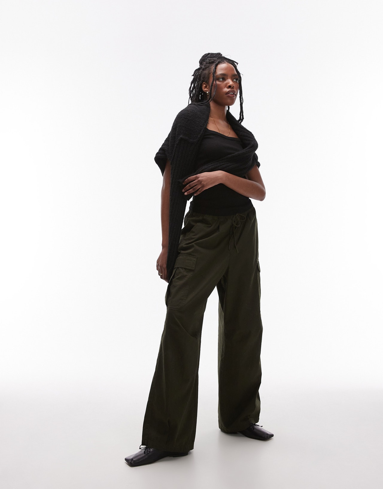 Topshop square neck rib cap sleeve tee in black - BLACK
