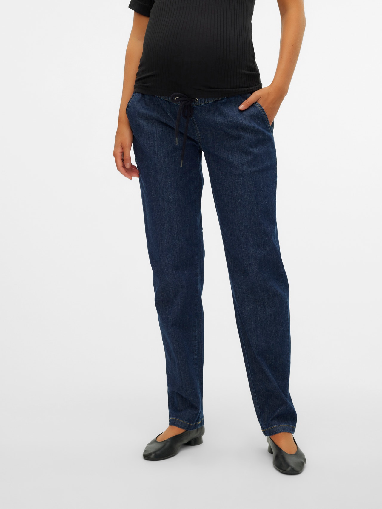 Vær sej i et par graviditetsjeans, der er designet til at passe til alle graviditetstrin og støtte din babybule med et elastisk babybule-bånd.
