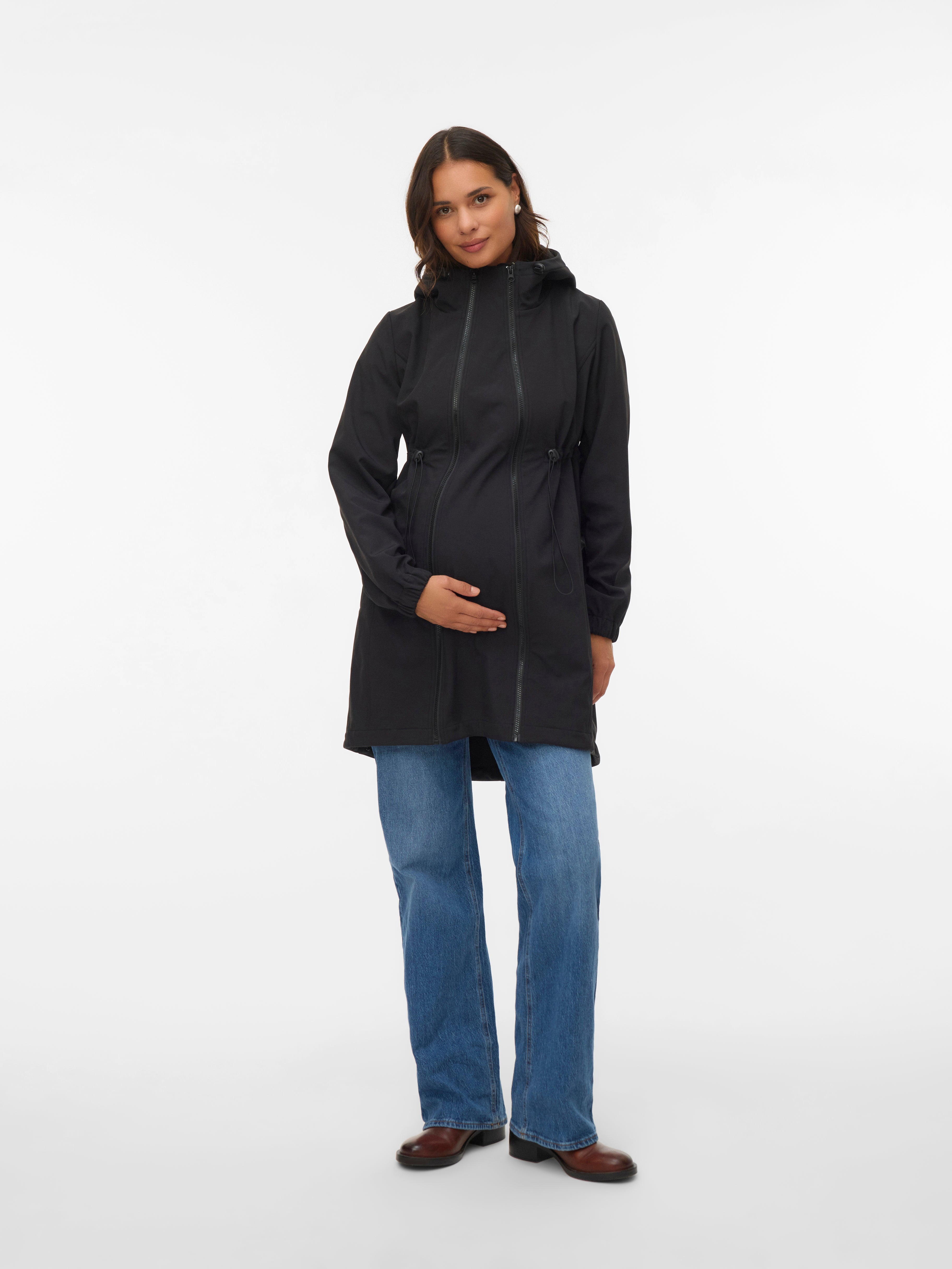 Gør garderoben klar til en ny sæson med funktionelt og moderigtigt 3-i-1 overtøj til graviditet, til at bære barnet efter fødslen samt som en almindelig jakke. Brug den under graviditeten med panelet i eller juster pasformen. Brug den efter fødslen med den praktiske bærefunktion til babyen; sæt panelet på foran, så du har plads til slynge, sele eller svøb - eller brug den som en helt almindelig jakke for et hyggeligt, rent look.