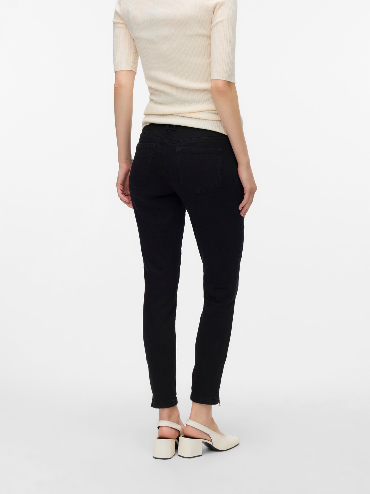 Vær sej i et par graviditetsjeans, der er designet til at passe til alle graviditetstrin og støtte din babybule med et elastisk babybule-bånd.