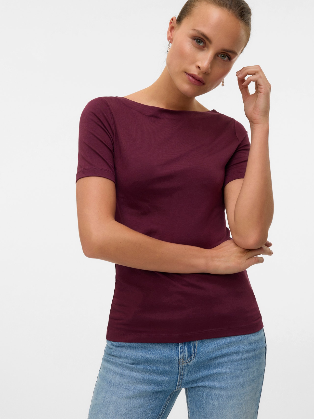 Im Zweifelsfall ein T-Shirt tragen! Mit einem T-Shirt können Sie nie etwas falsch machen - eine perfekte Wahl für einen coolen und zeitlosen Look. Tragen Sie dieses T-Shirt zu einer schönen Boyfriend-Jeans und fügen Sie ein Paar klobige Sneaker für einen urbanen City-Look hinzu.