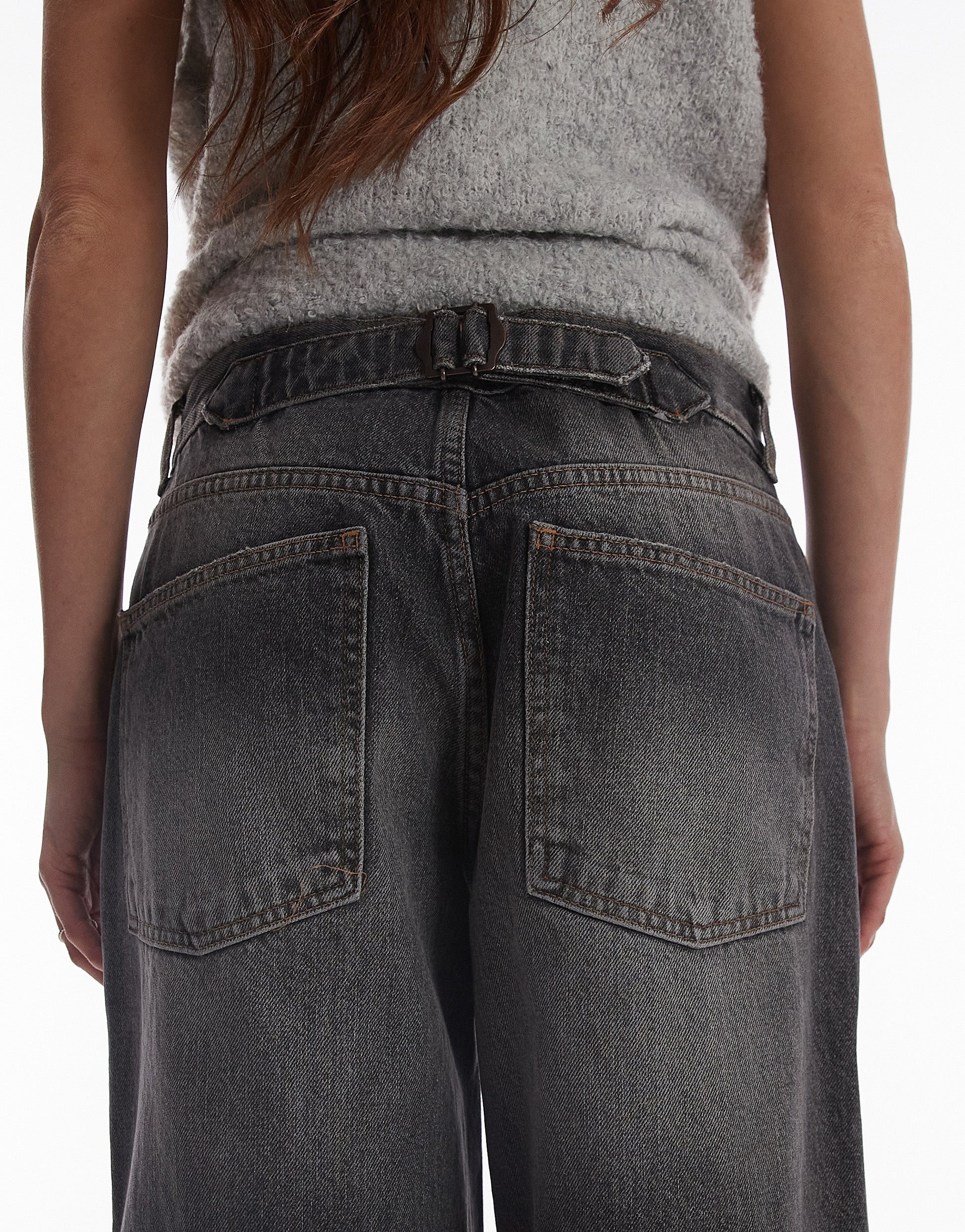 Topshop low rise Cinch jeans in dark vintage grey - GREY