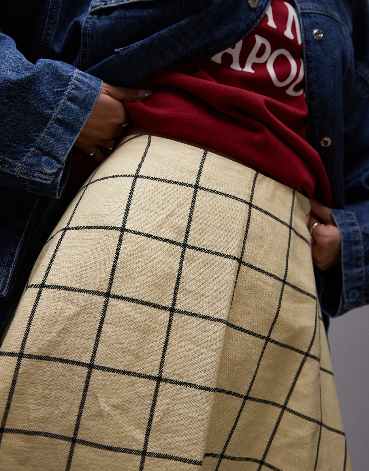 Topshop full skirt in yellow windowpane check - YELLOW