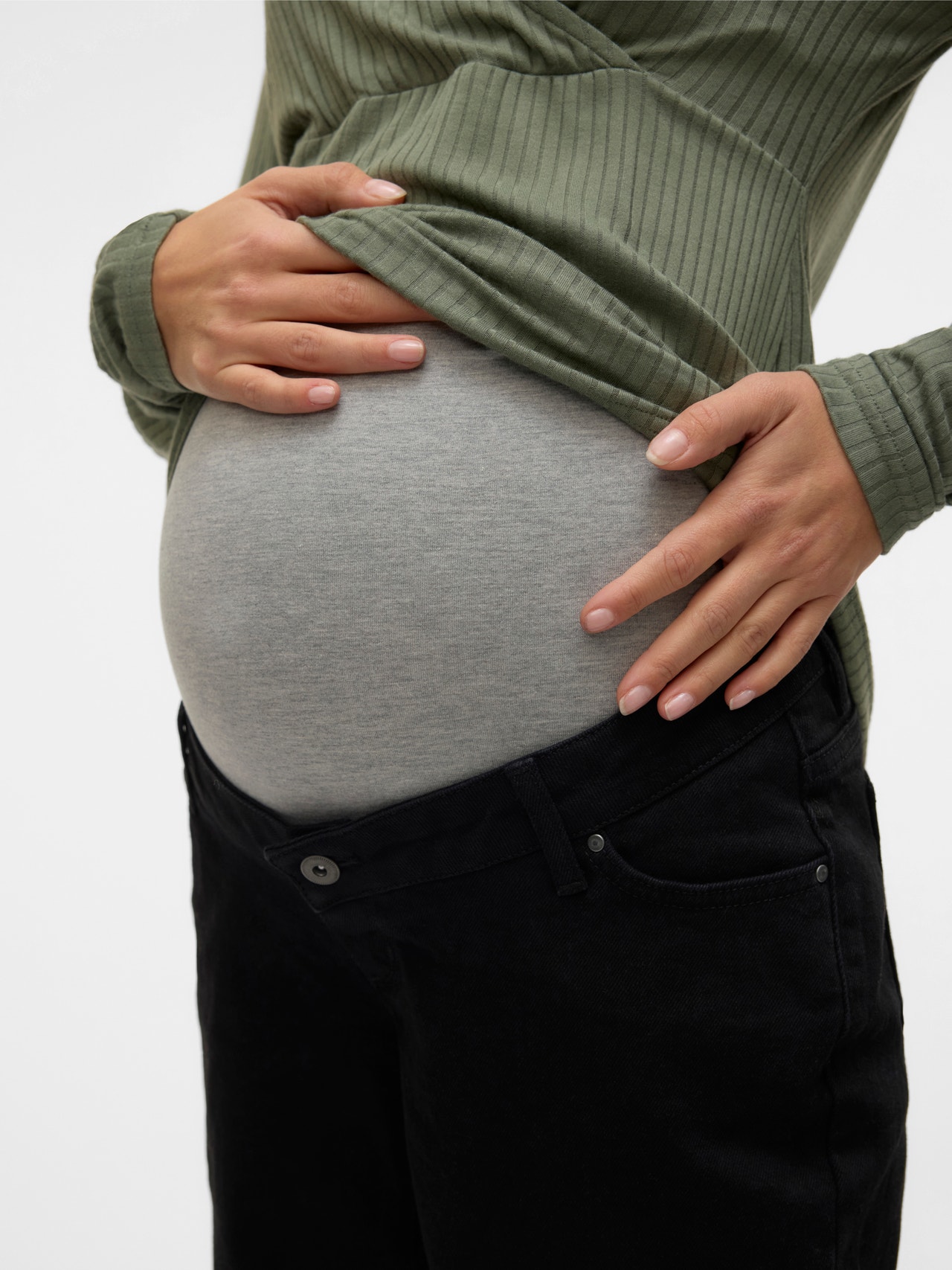 Bleib cool in einer Umstandsjeans, die du in jeder Phase deiner Schwangerschaft tragen kannst und die deinen Bauch mit einem elastischen Bauchband stützt.