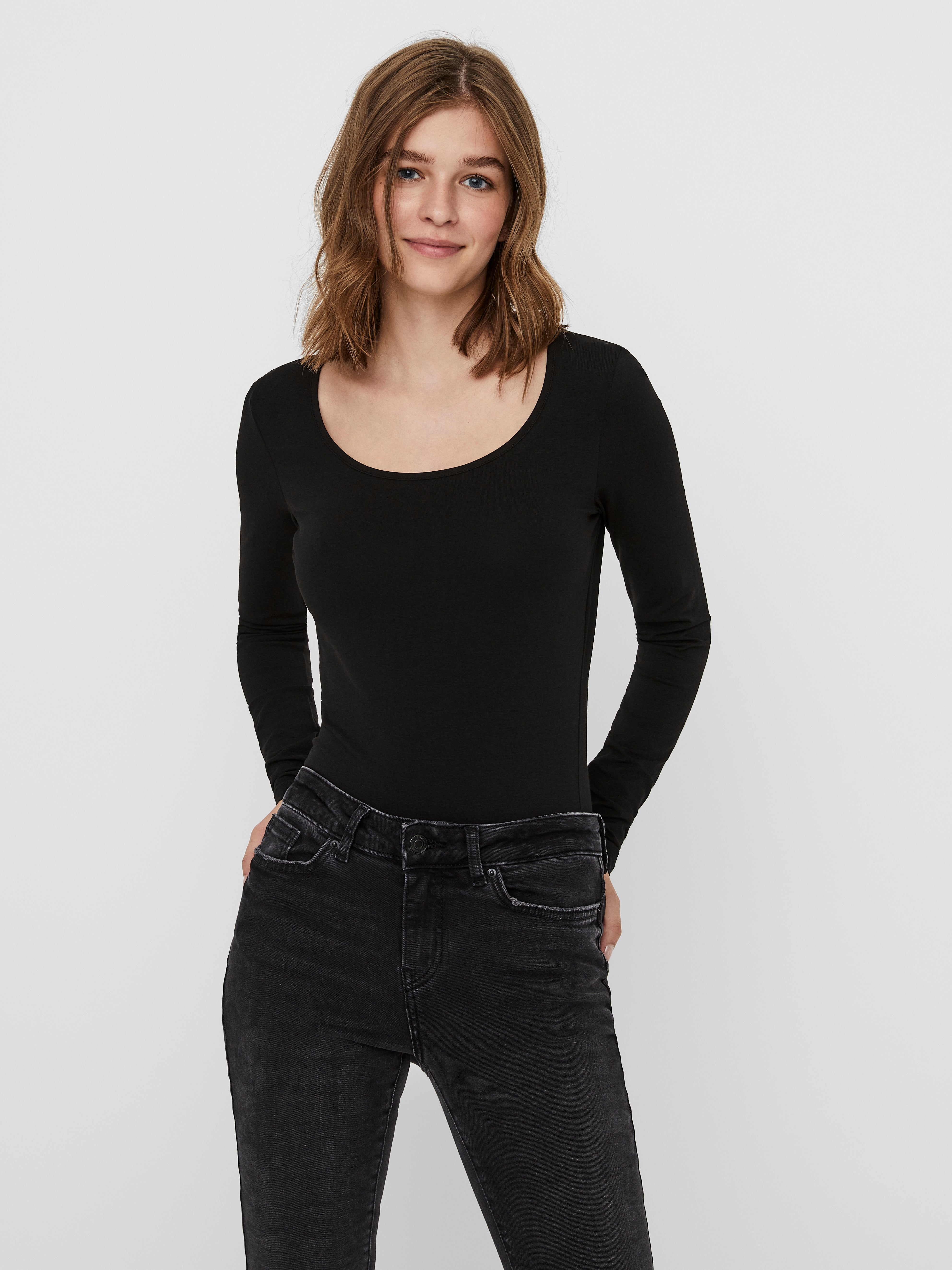 Basics finden sich in jedem Kleiderschrank. Unsere Basic-Oberteile sind das verbindende Element für ein Outfit – und dieses Oberteil ist da keine Ausnahme. Style es mit einer Hemdjacke, einer bequemen Mom Jeans und Chunky Stiefeln zu einem lässigen und coolen Alltagslook.