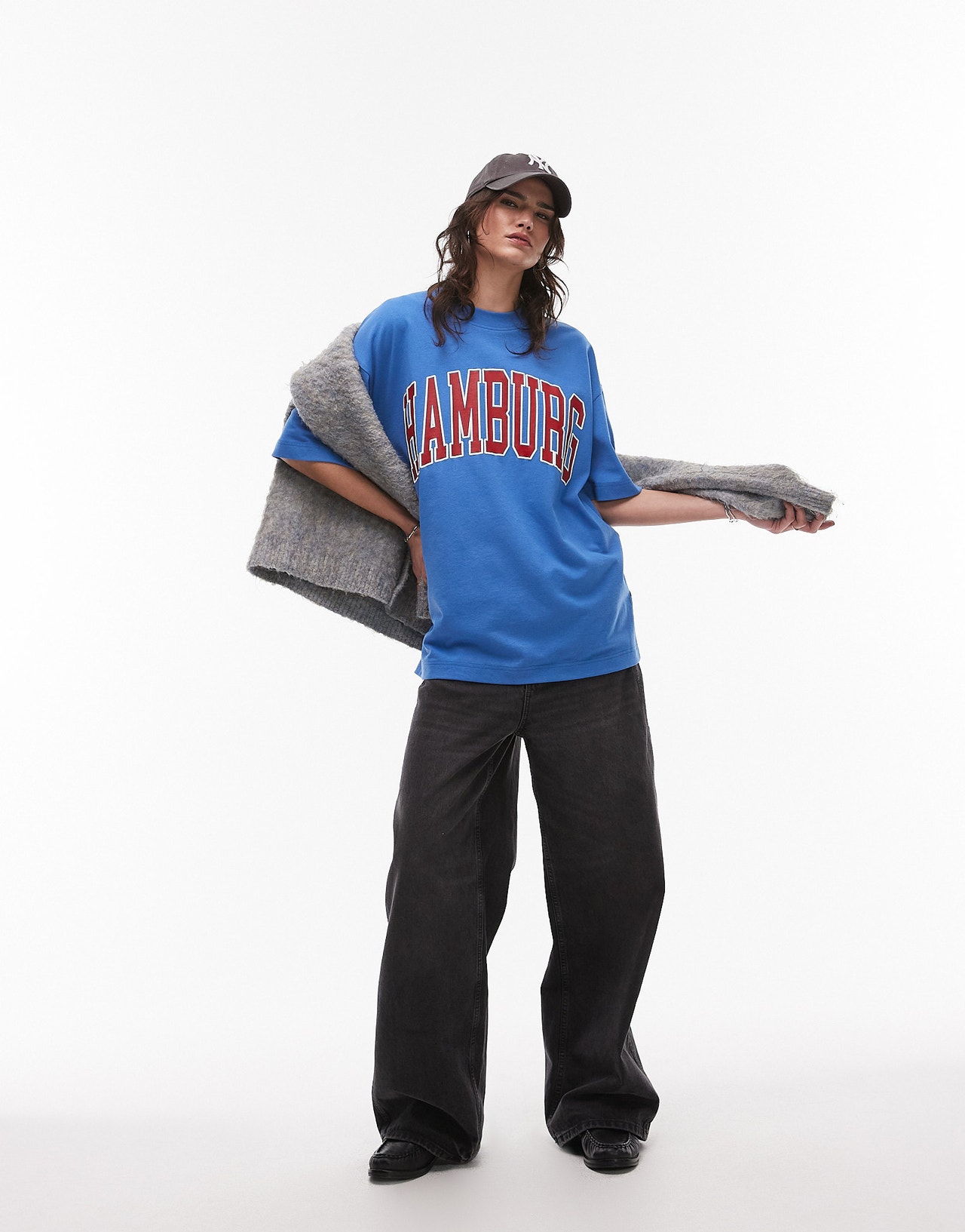 Topshop graphic Hamburg oversized tee in blue - MBLUE