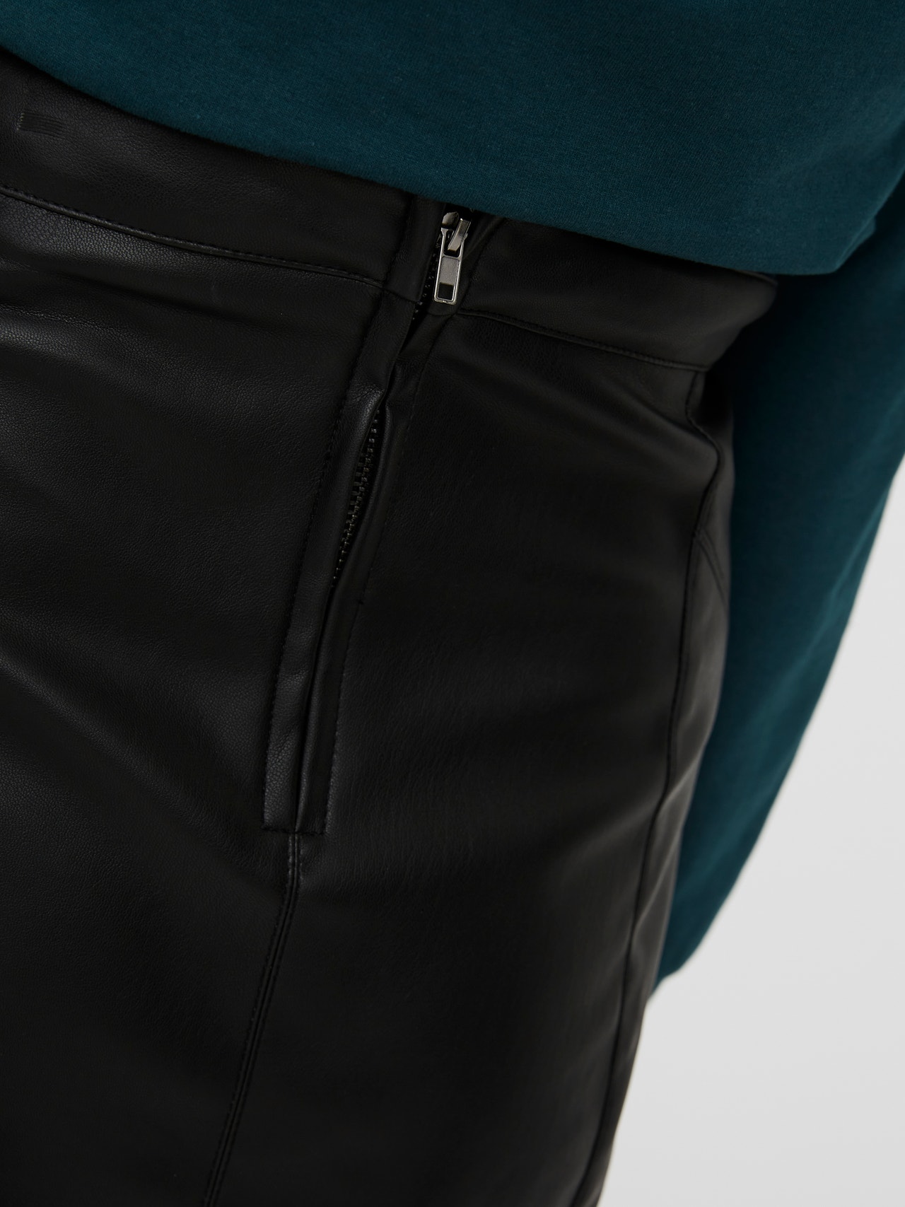 Imitation mini skirt with zip closure in the back. The skirt is made from a super soft imitation material. Style it with a t-shirt and sneakers for a trendy and cool look.