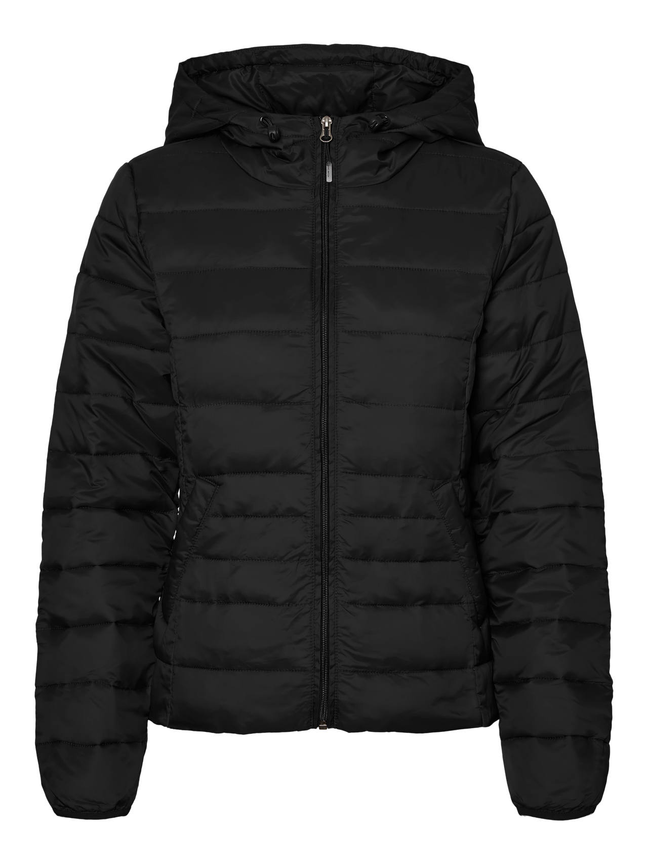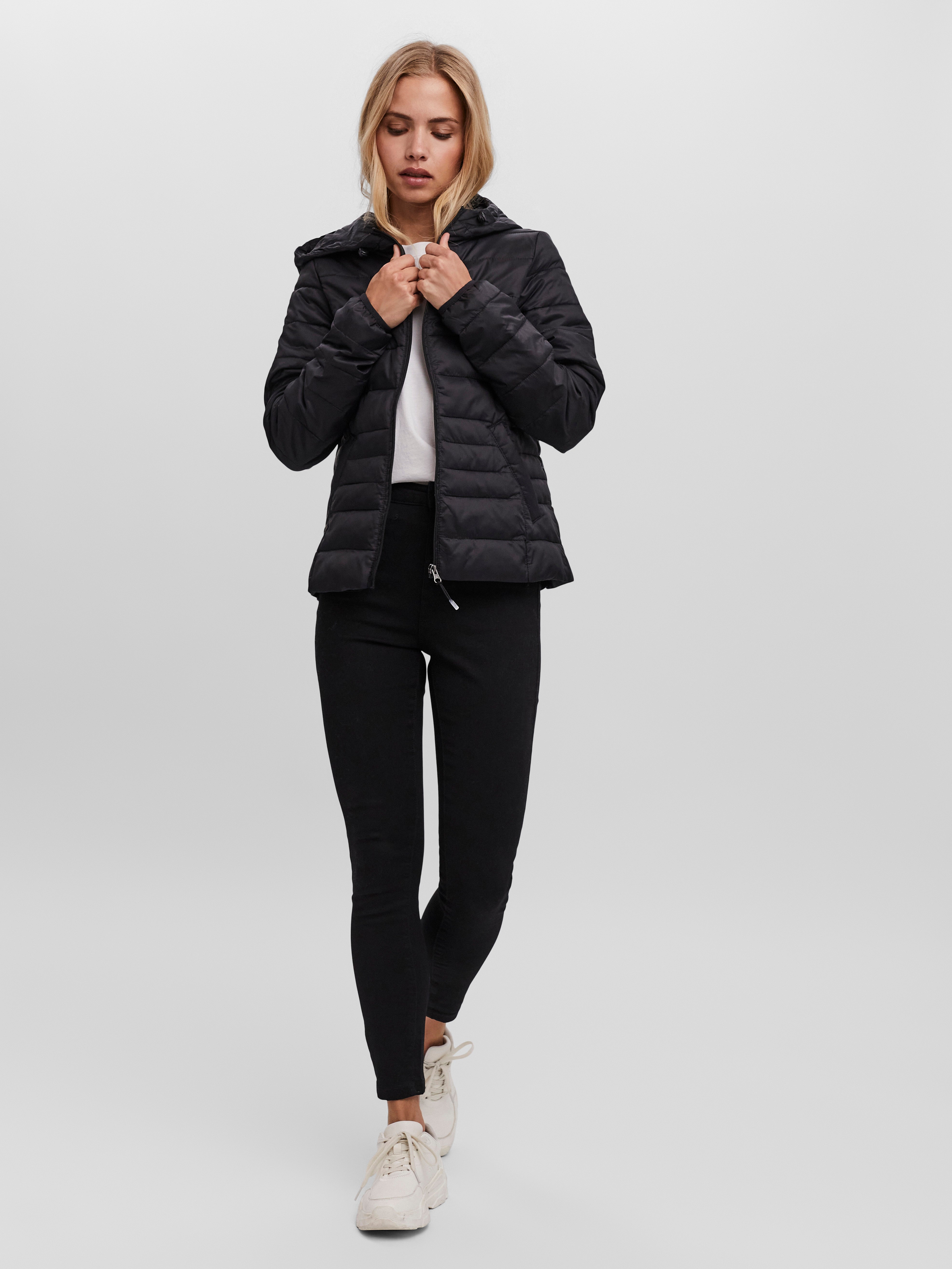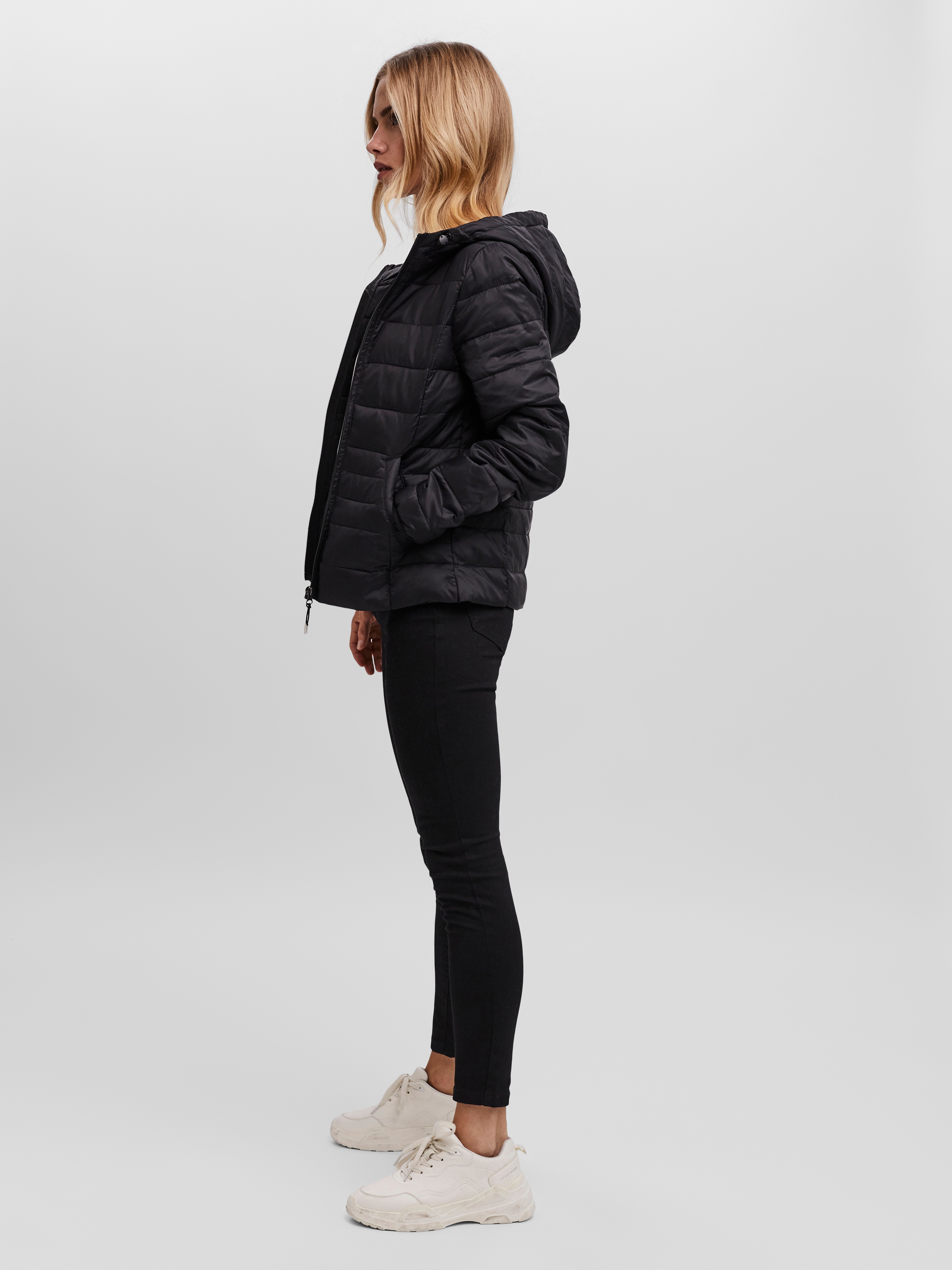 Hooded jacket with zip closure and front pockets. The jacket also has drawstrings at the hood. Style it with jeans for an effortless look.