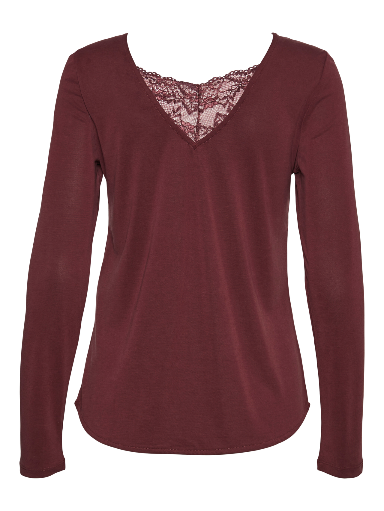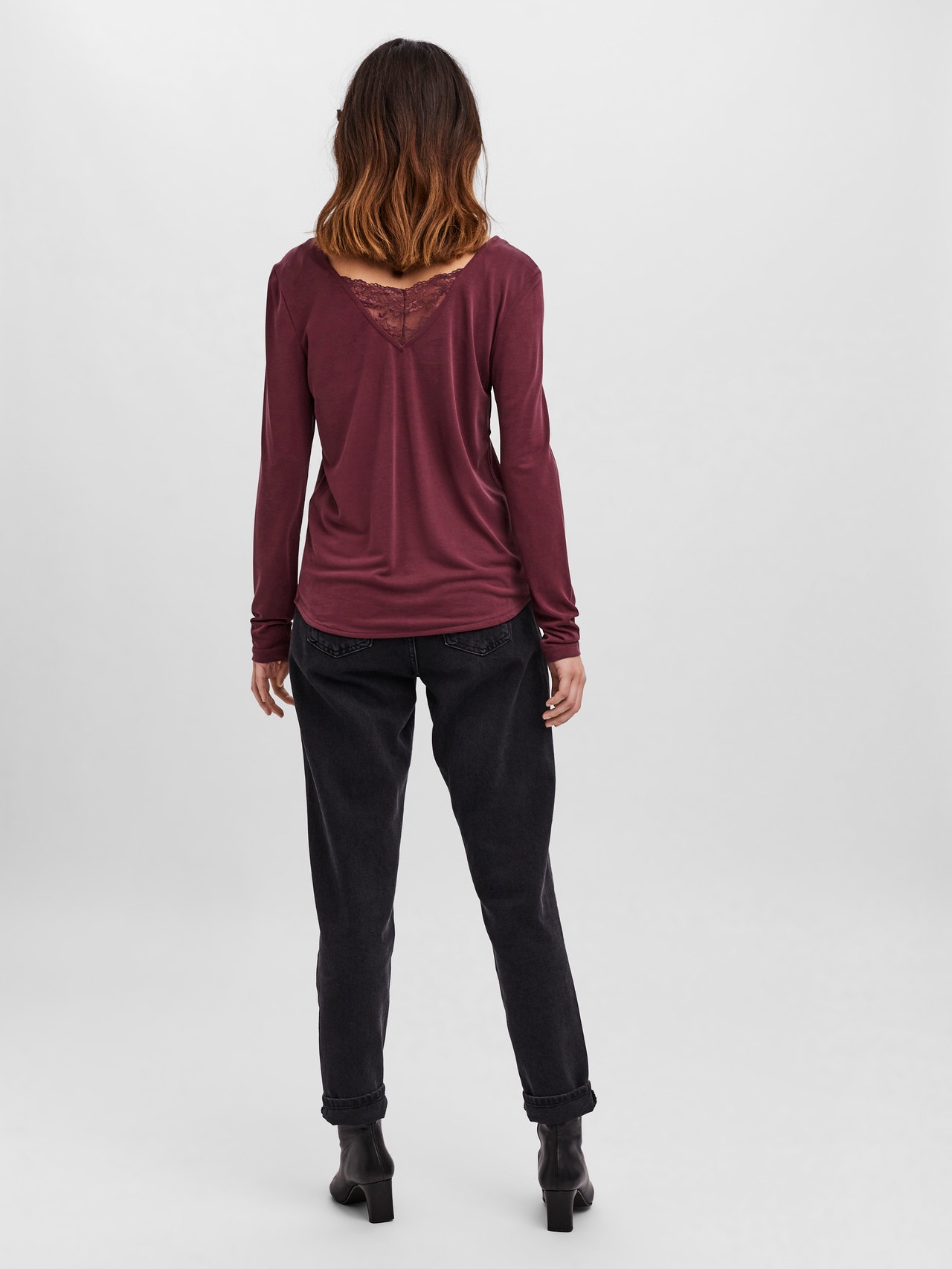 Top with a deep v-neckline and a lace detail by the neckline. Style this beautiful top with a cool pair of mom-jeans and add some chunky sneakers for a great everyday look.