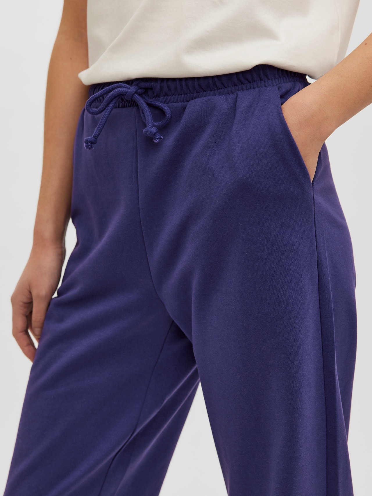 High waisted sweatpants with drawstrings at the waist. Since sweatpants are the new black, wear these as a cool everyday look with a pair of sneakers and a cool t-shirt.