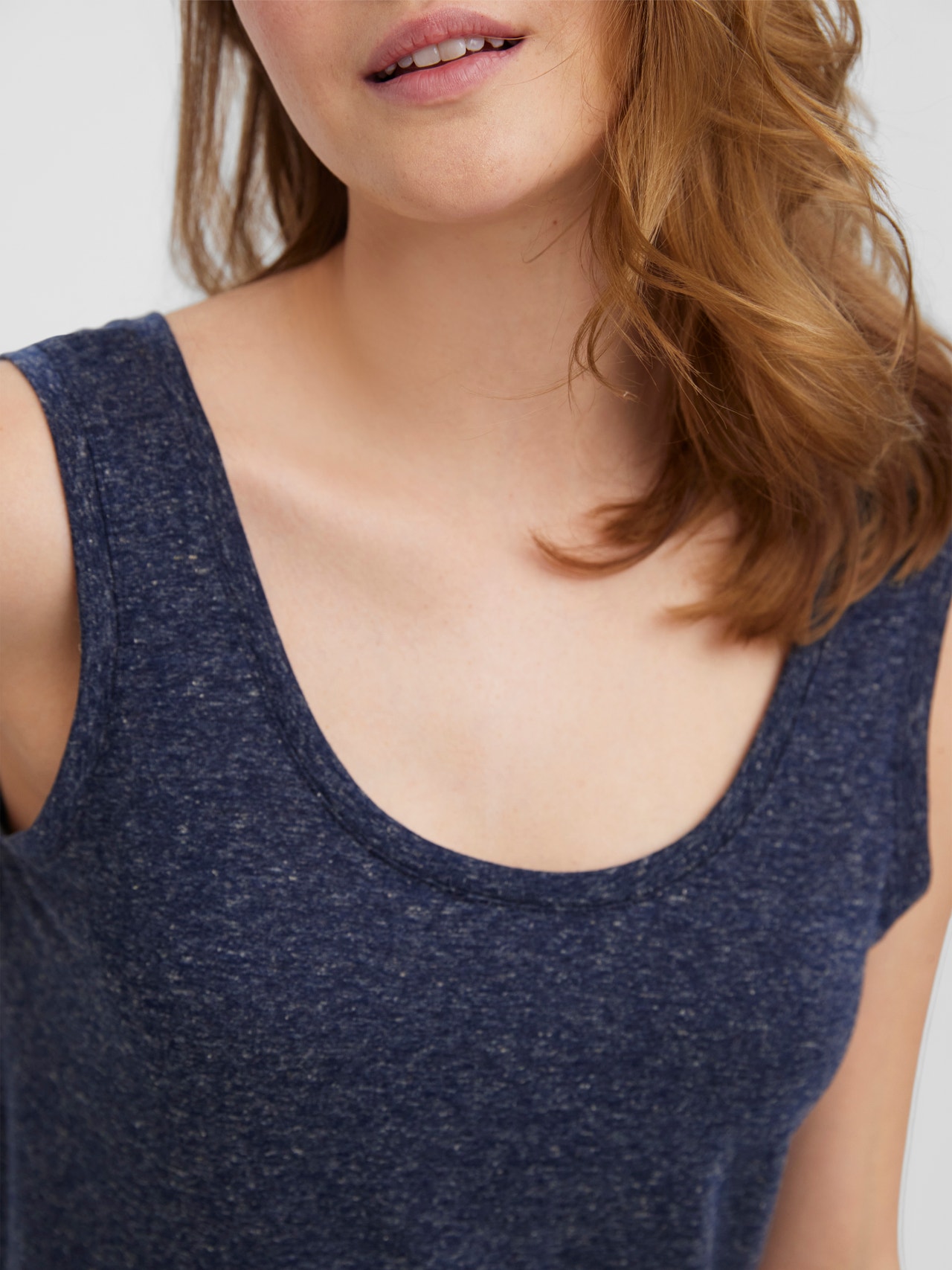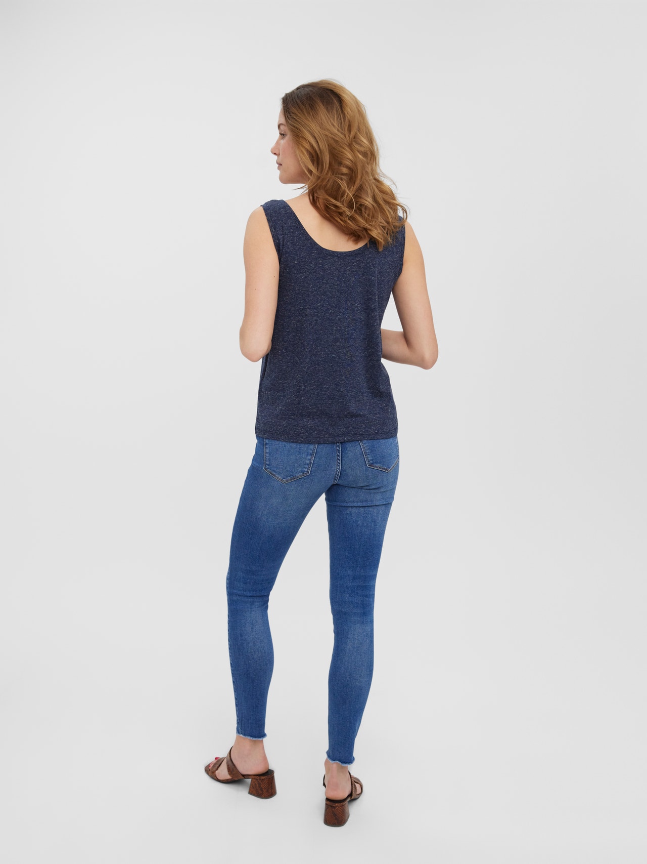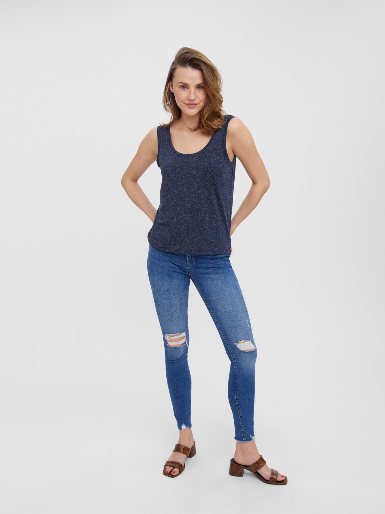 Tank top with wide straps, a round neckline, and a regular fit. The perfect basic top that you can style with every outfit. Style it with a pair of shorts and some heeled boots for a stylish summer look.