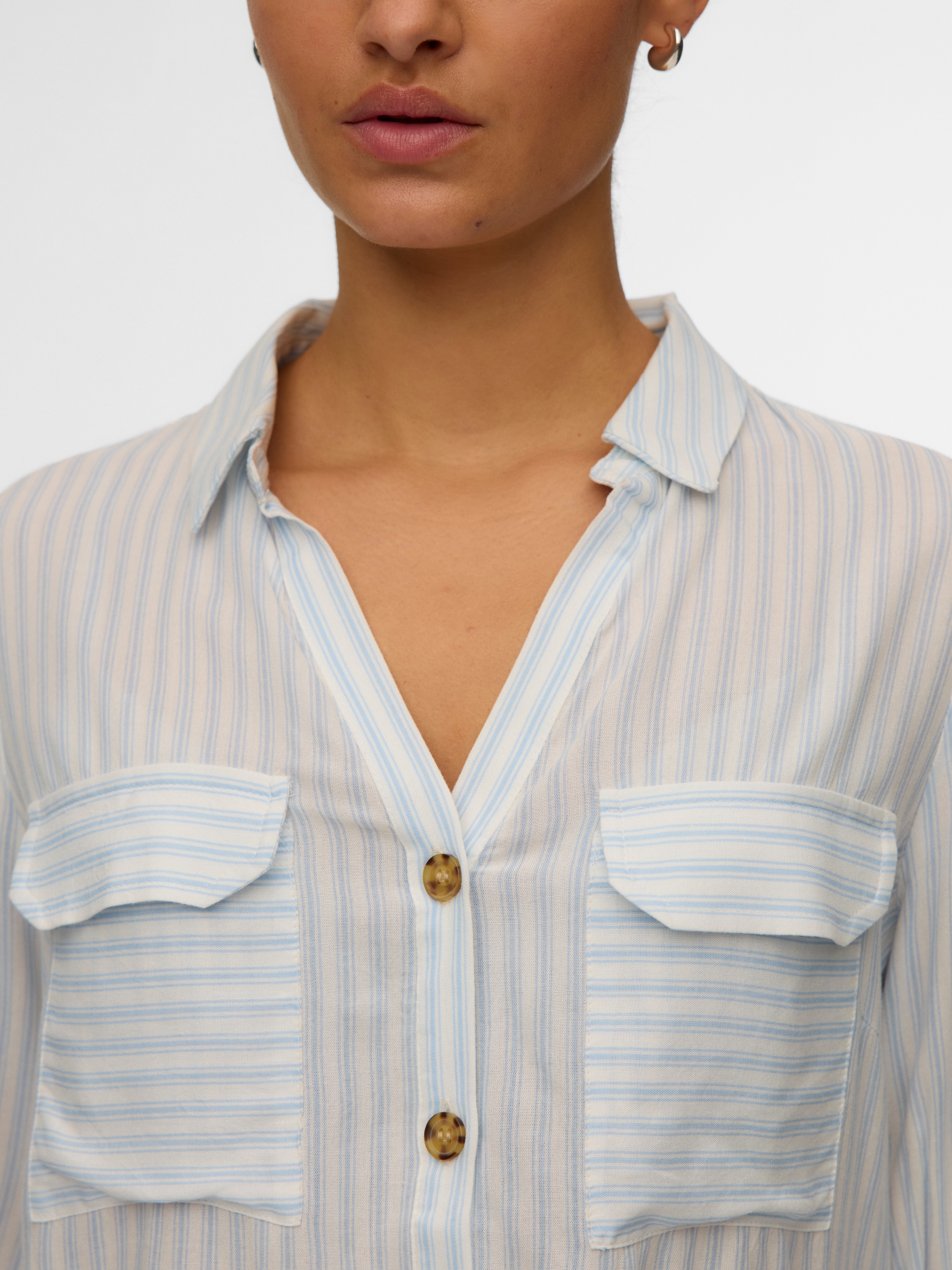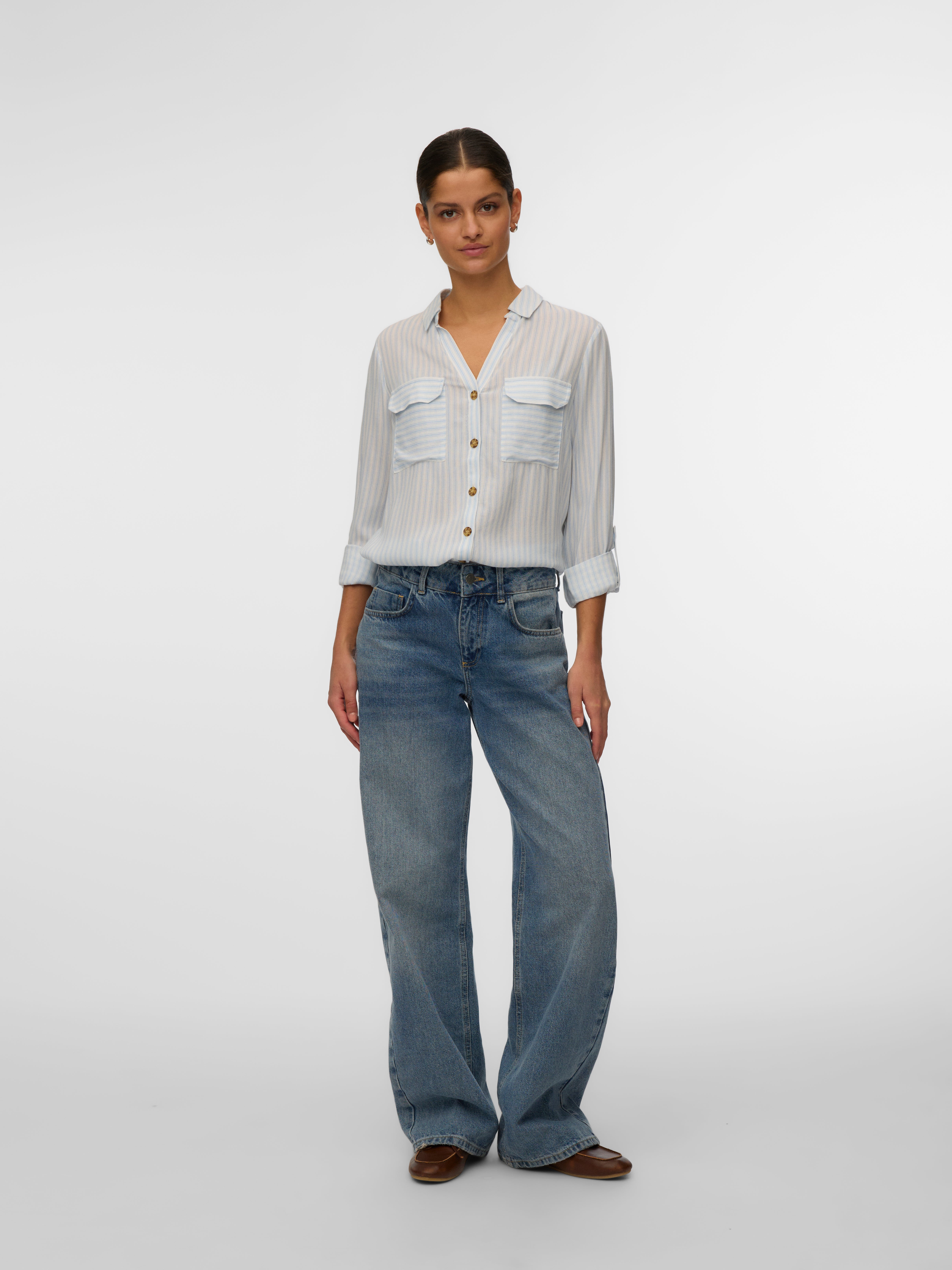 Diese Bluse ist ein schicker und vielseitiger Neuzugang in deinem Kleiderschrank, denn du kannst sie entweder offen über einem schlichten Oberteil oder geschlossen tragen. Kombiniere sie mit einer klassischen Jeans und einem schlichten T-Shirt zu einem coolen Alltagslook oder style sie schicker, indem du dazu eine Anzughose und Absatzschuhe trägst.
