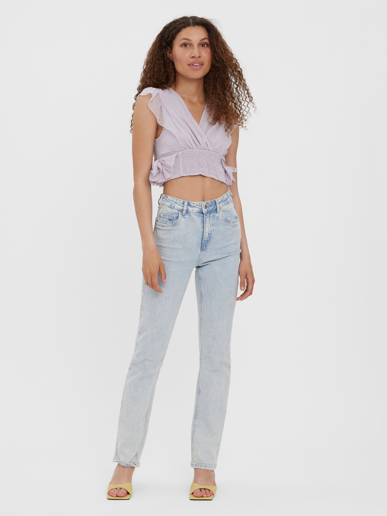 Detailed top with bow details at the waist, frills by the shoulders, and smock at the waist. Style this lovely top with a pair of jeans and some heeled slippers for a stylish look.
