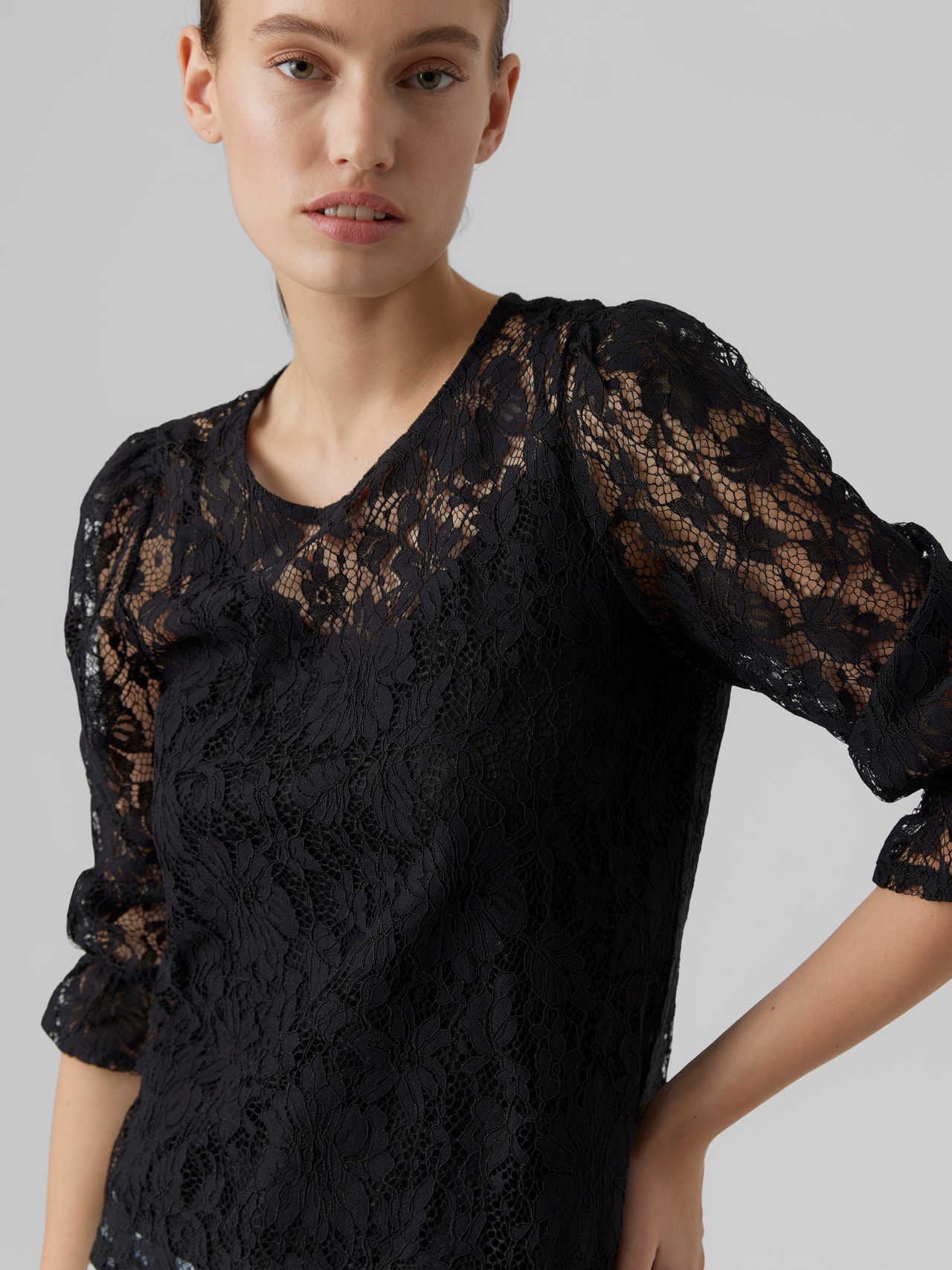 LDS JERSEY L/S LACE TOP