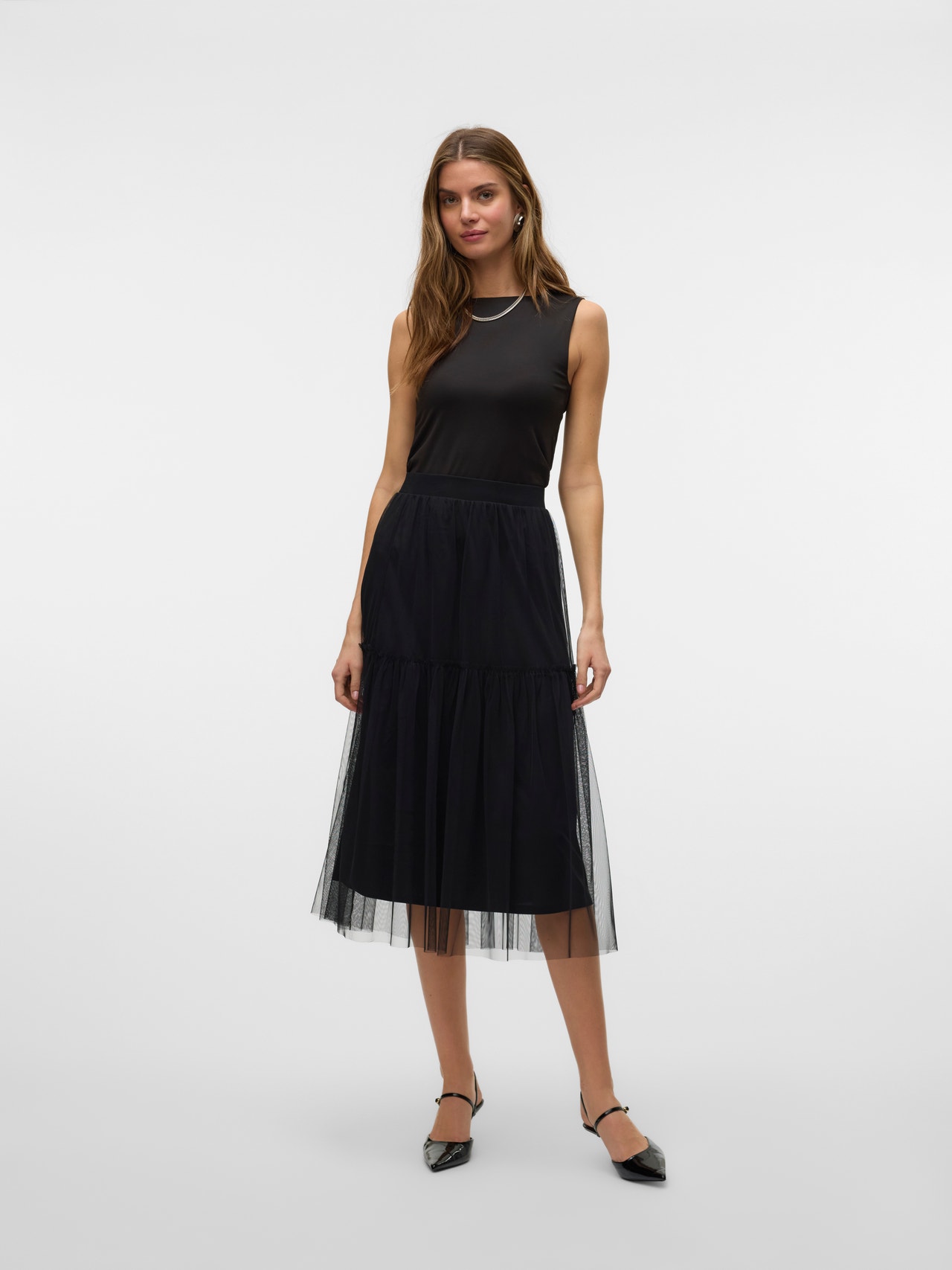 Du willst ausgehen? Wir haben die perfekte Outfit-Idee für dich. Style deinen Partyrock mit einem süßen Oberteil, High Heels und etwas auffälligem Schmuck. Fertig!.
