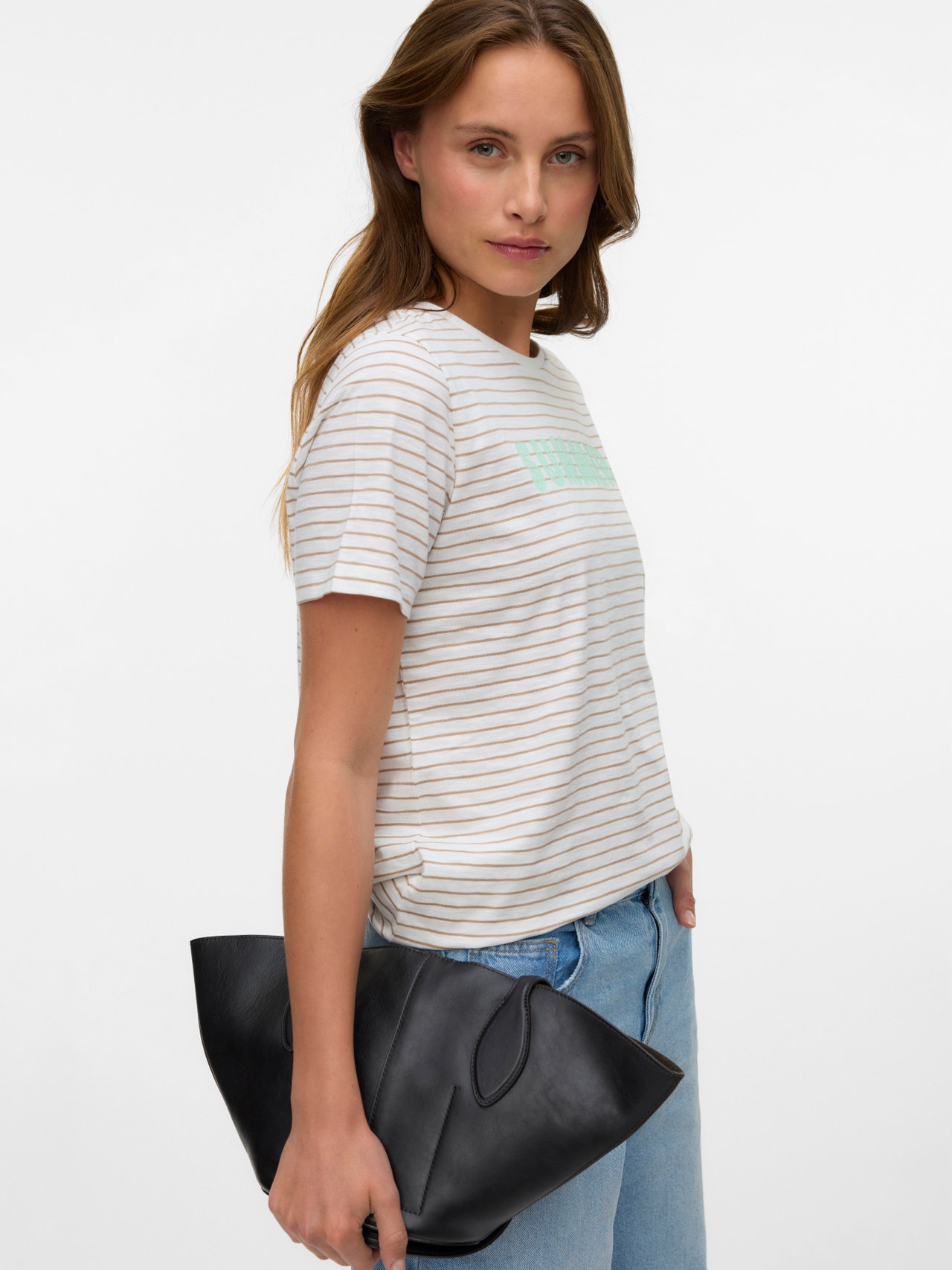 Im Zweifelsfall ein T-Shirt tragen! Mit einem T-Shirt können Sie nie etwas falsch machen - eine perfekte Wahl für einen coolen und zeitlosen Look. Tragen Sie dieses T-Shirt zu einer schönen Boyfriend-Jeans und fügen Sie ein Paar klobige Sneaker für einen urbanen City-Look hinzu.