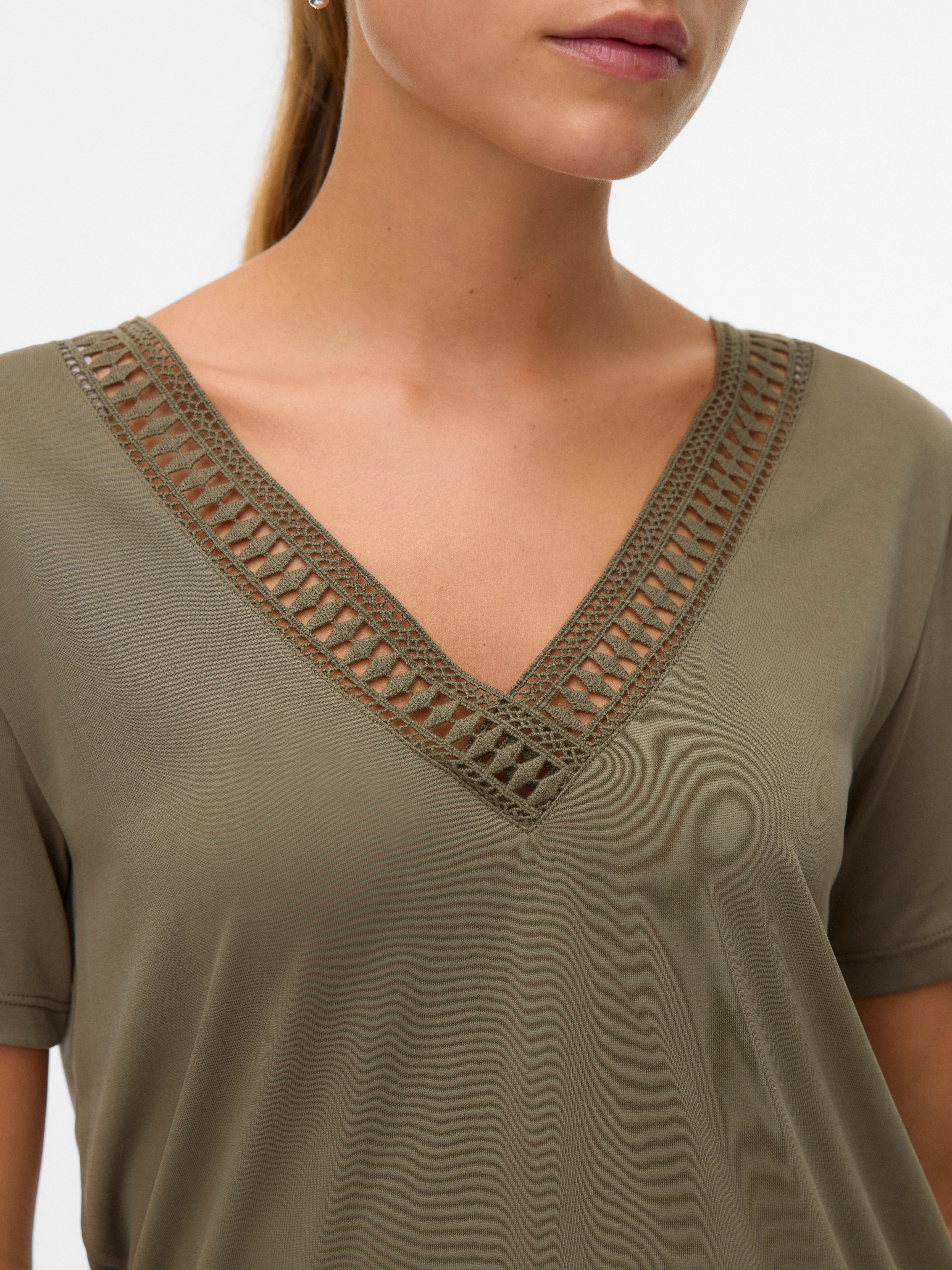 - Hals : V-Ausschnitt
