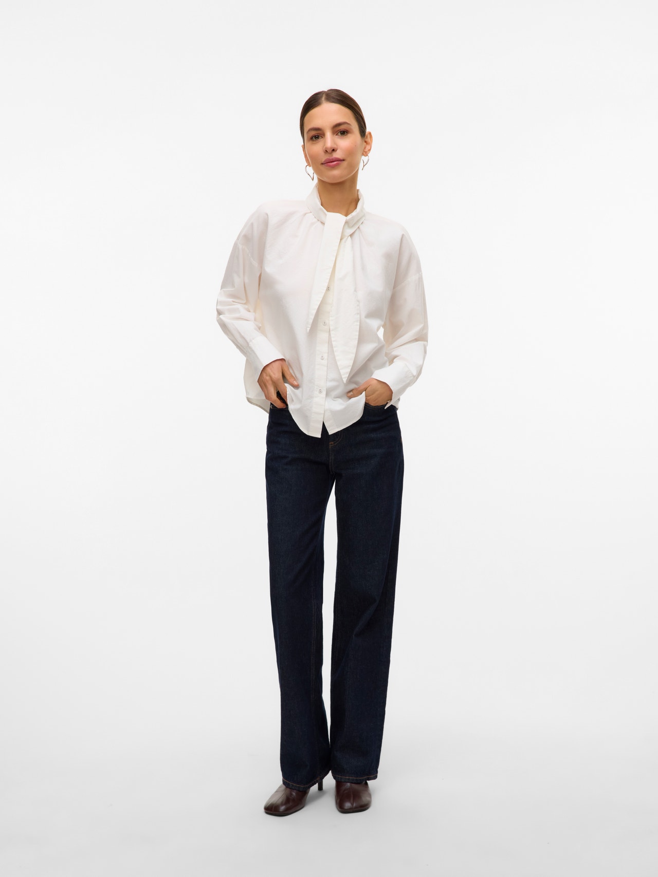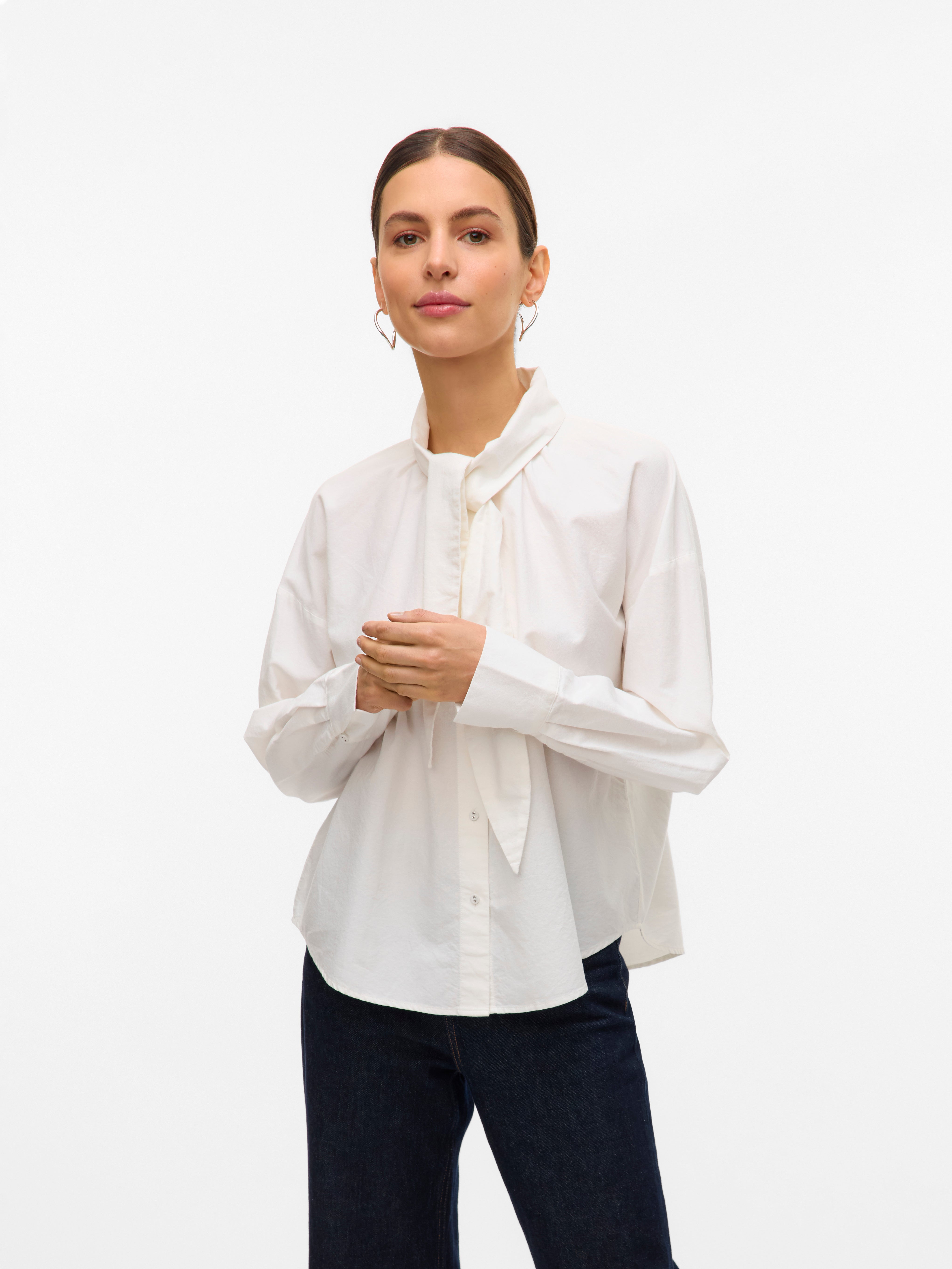 Diese umwerfende Bluse kannst du je nach Anlass schicker oder lässiger stylen, aber feminin wirkt sie auf jeden Fall. Kombiniere sie am besten mit einer Baggy Jeans und High Heels zu einem perfekten Freizeitlook mit Chic.