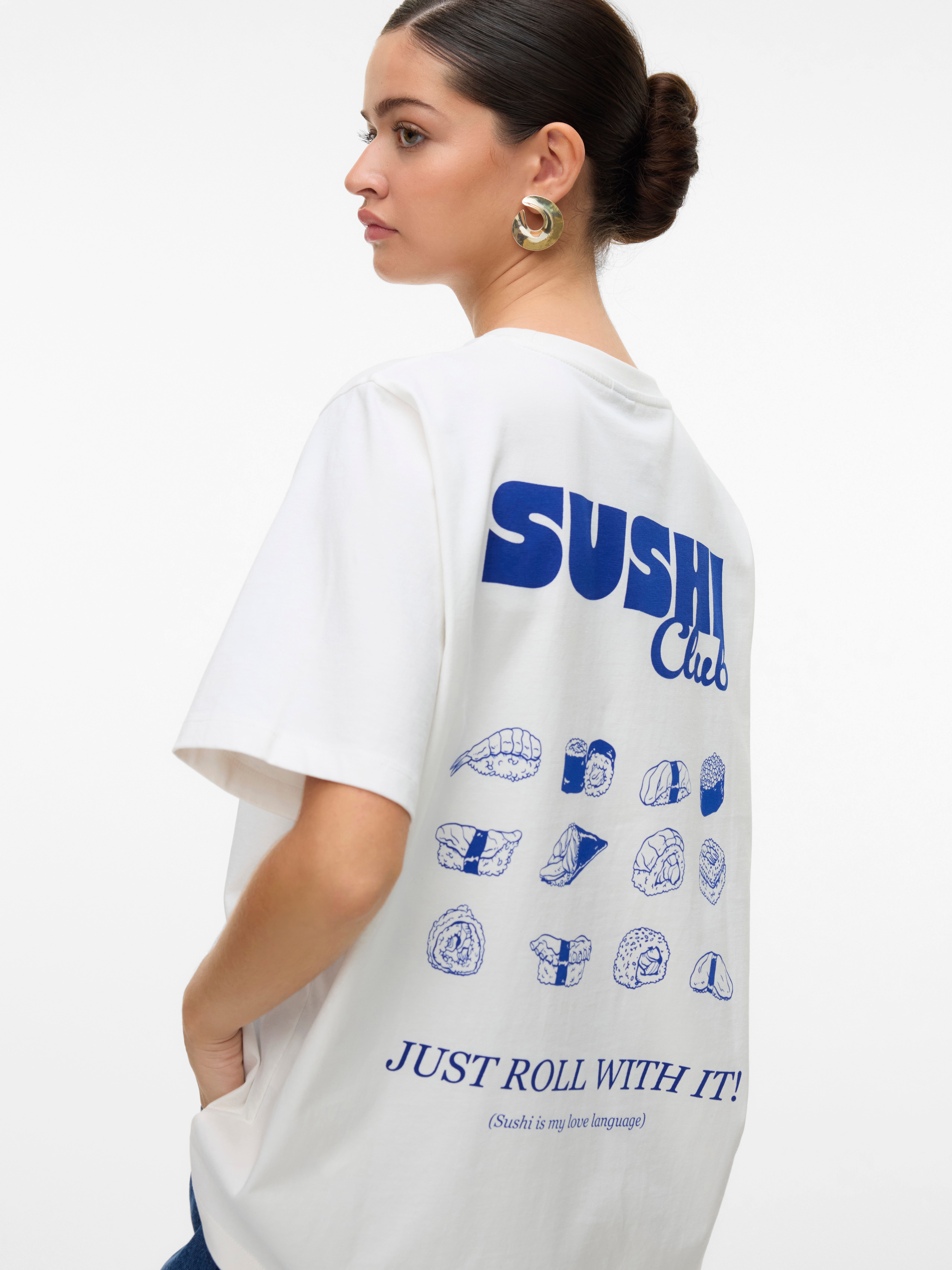 Im Zweifelsfall ein T-Shirt tragen! Mit einem T-Shirt können Sie nie etwas falsch machen - eine perfekte Wahl für einen coolen und zeitlosen Look. Tragen Sie dieses T-Shirt zu einer schönen Boyfriend-Jeans und fügen Sie ein Paar klobige Sneaker für einen urbanen City-Look hinzu.