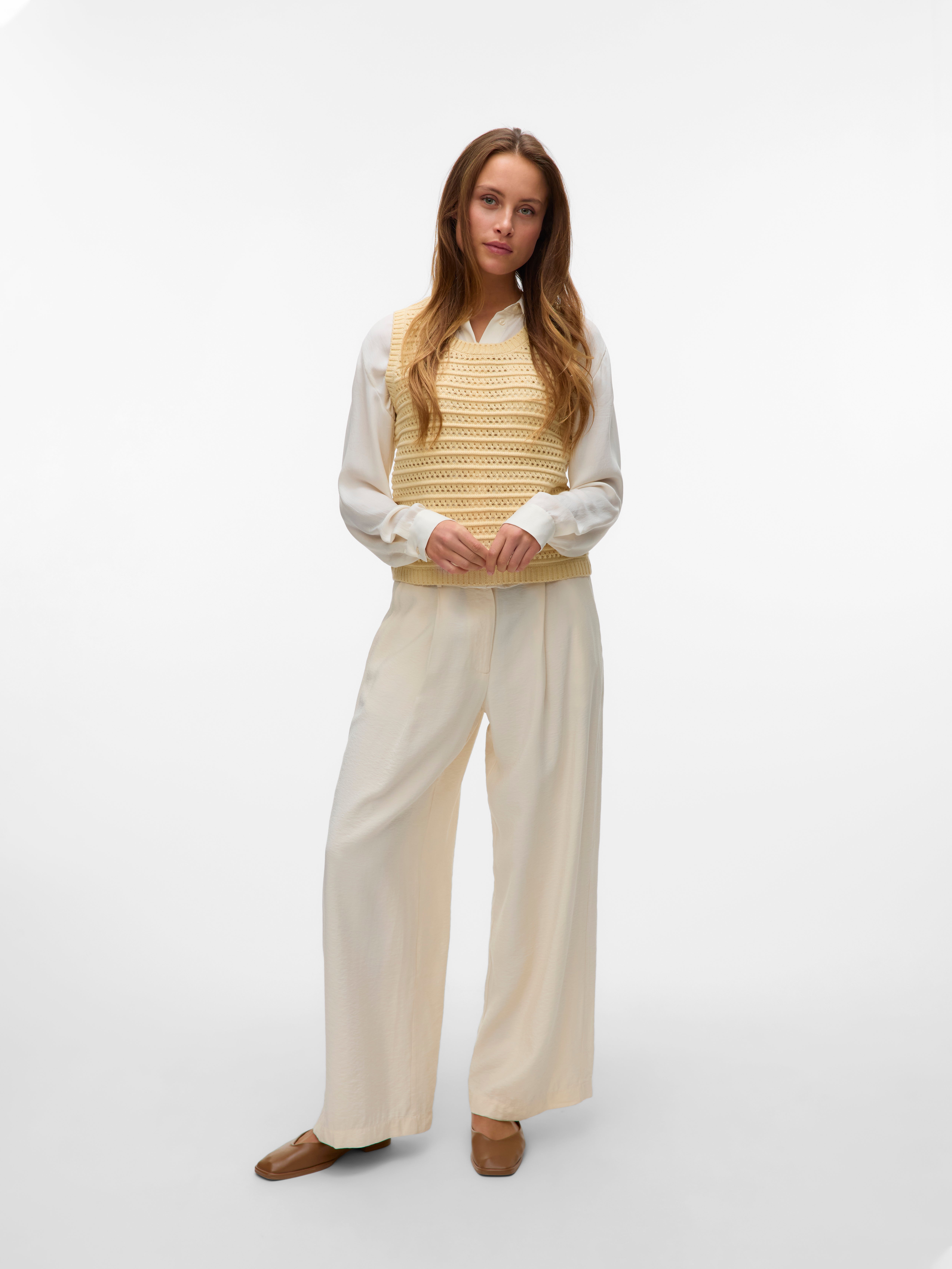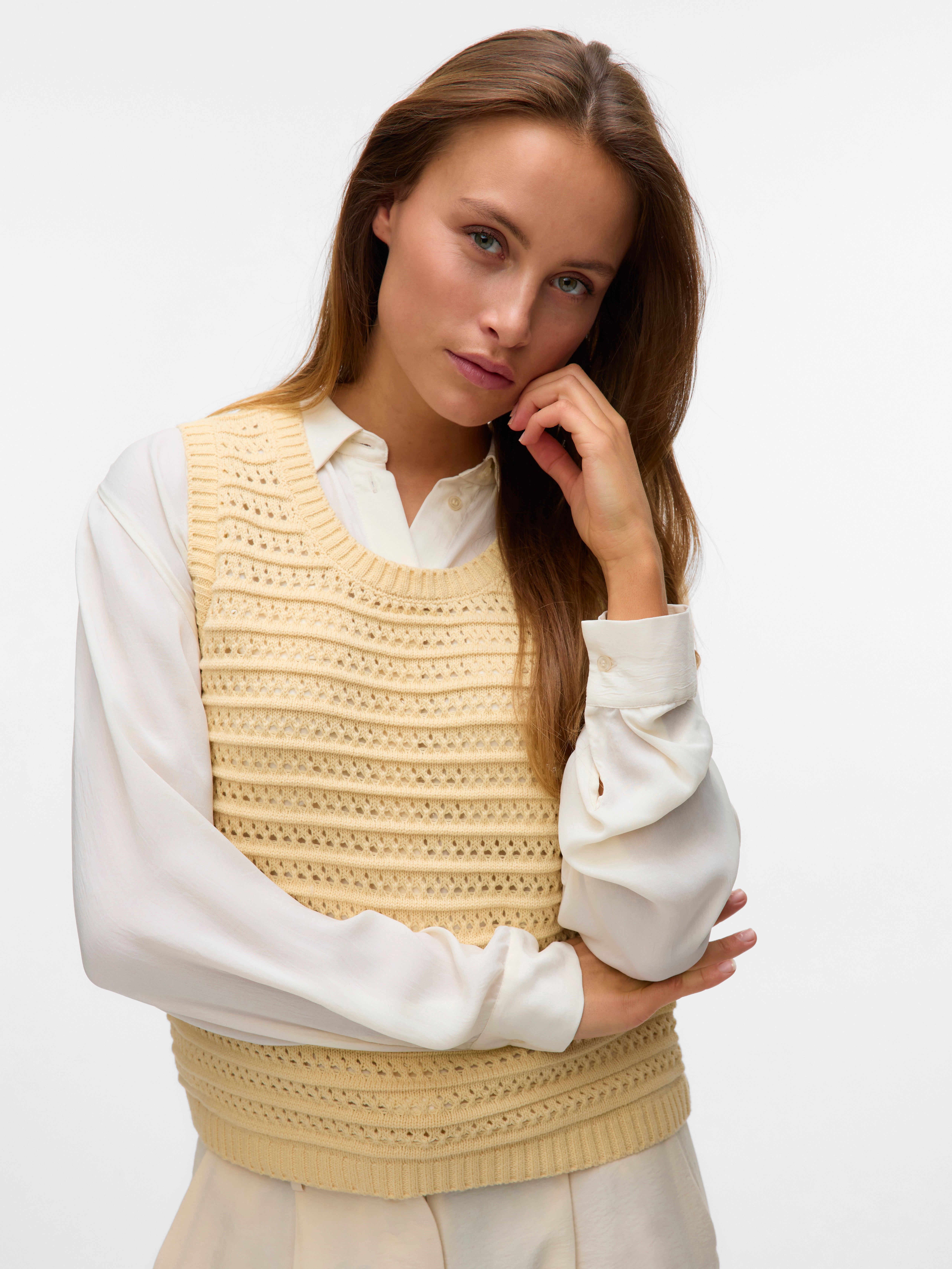 Ein Pullunder ist immer eine gute Wahl, ob als Wärmespender oder für einen einzigartigen Look. Er bringt dich mühelos durch die kälteren Monate, ohne Kompromisse beim Stil oder Komfort zu machen. Dieser coole Pullunder ist schön weich und wertet deinen Look perfekt auf. Mit ihm kannst du deine klassische Oversize-Bluse lässiger stylen und sorgst gleichzeitig für einen stimmigen Look. Das ist ein absolutes Must-have im Kleiderschrank.