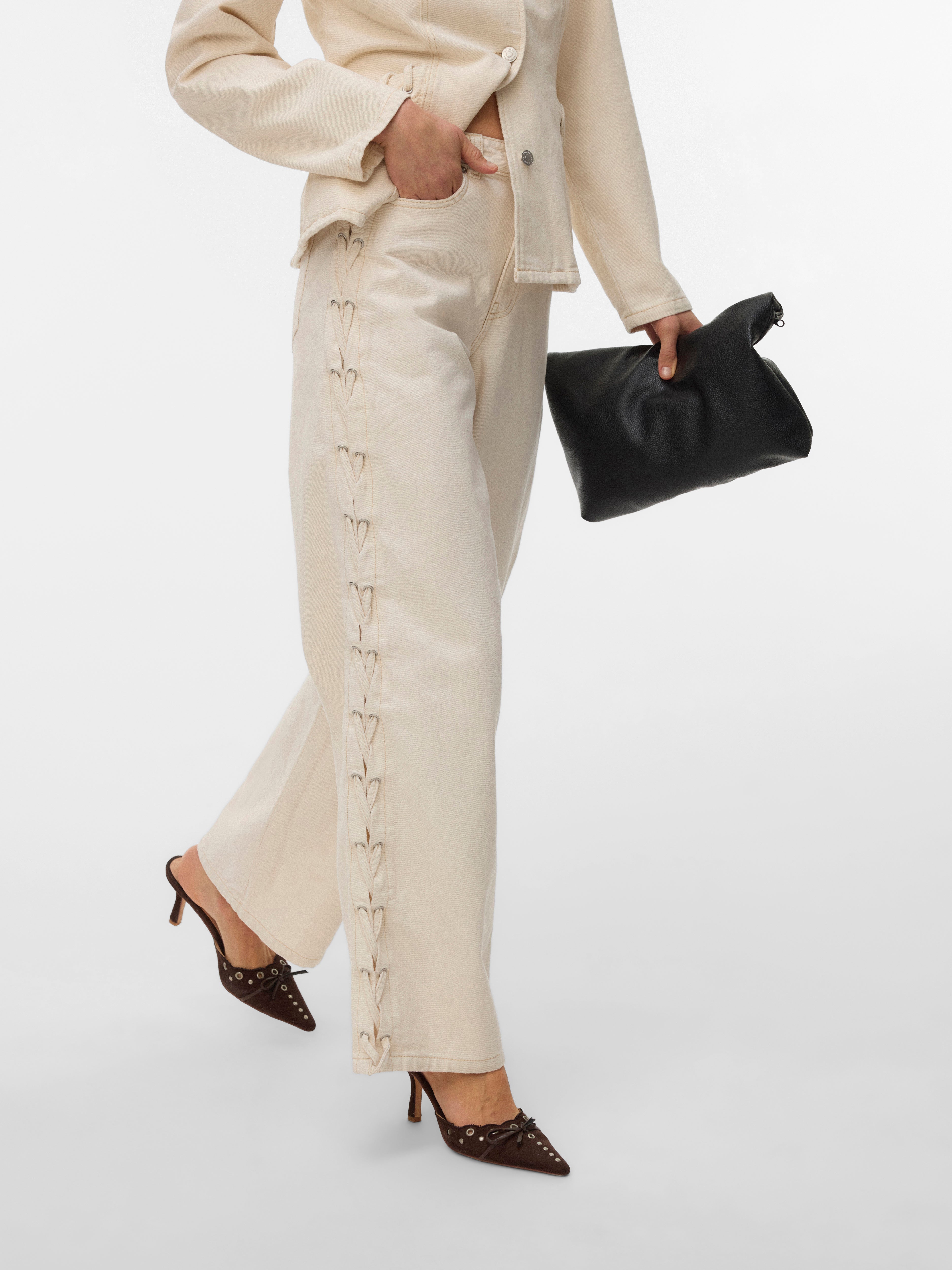 VMRAE Hohe Taille Weiter Beinschnitt Jeans