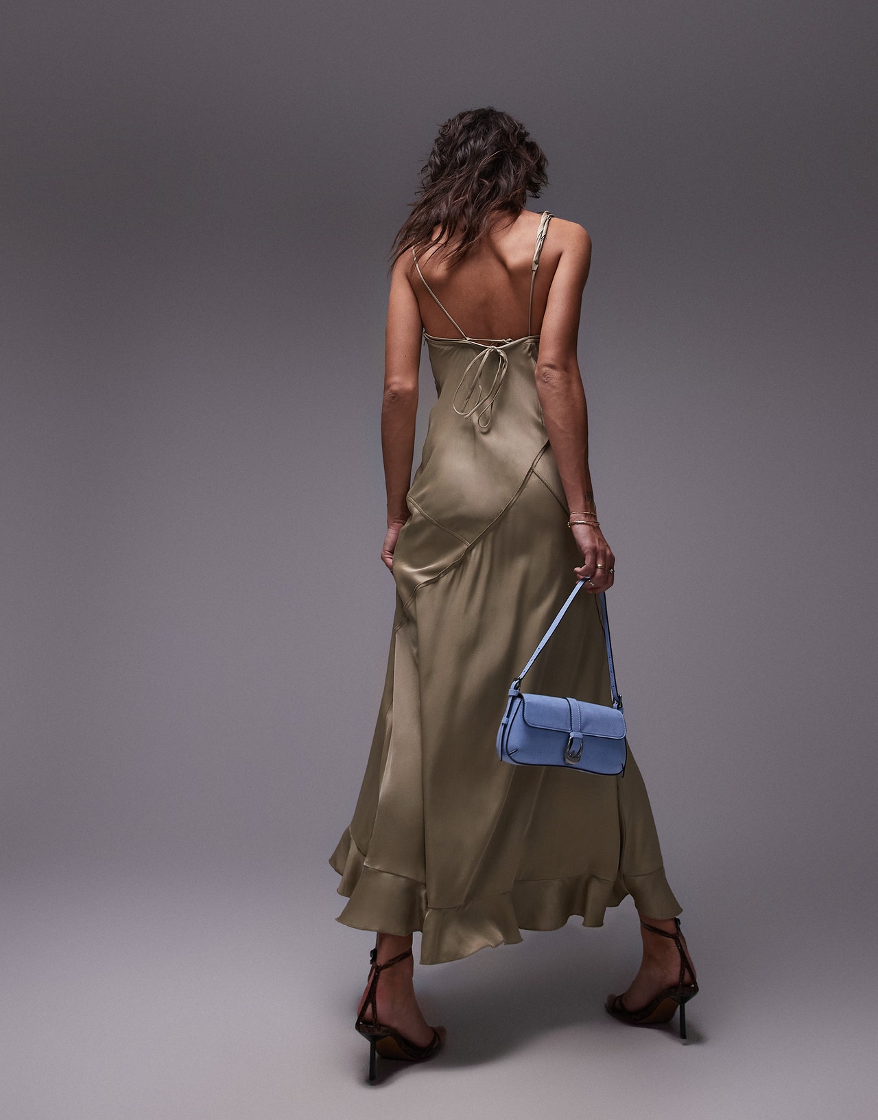 Topshop twist shoulder exposed seam midi slip in soft gold satin - GOLD