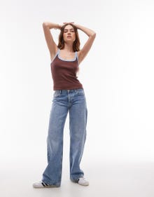 Topshop contrast rib scoop skinny strap vest in choc and blue - BROWN