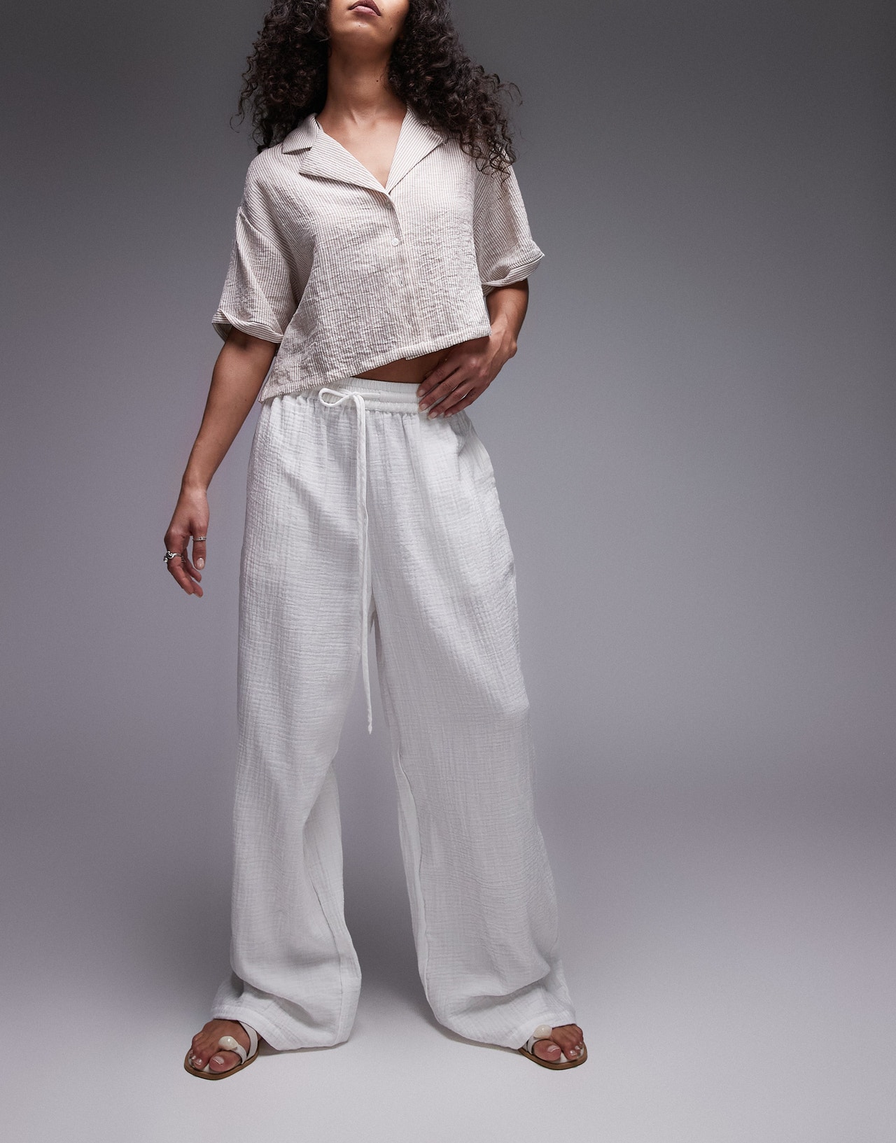 Topshop casual cheesecloth pull on trouser in white - WHITE