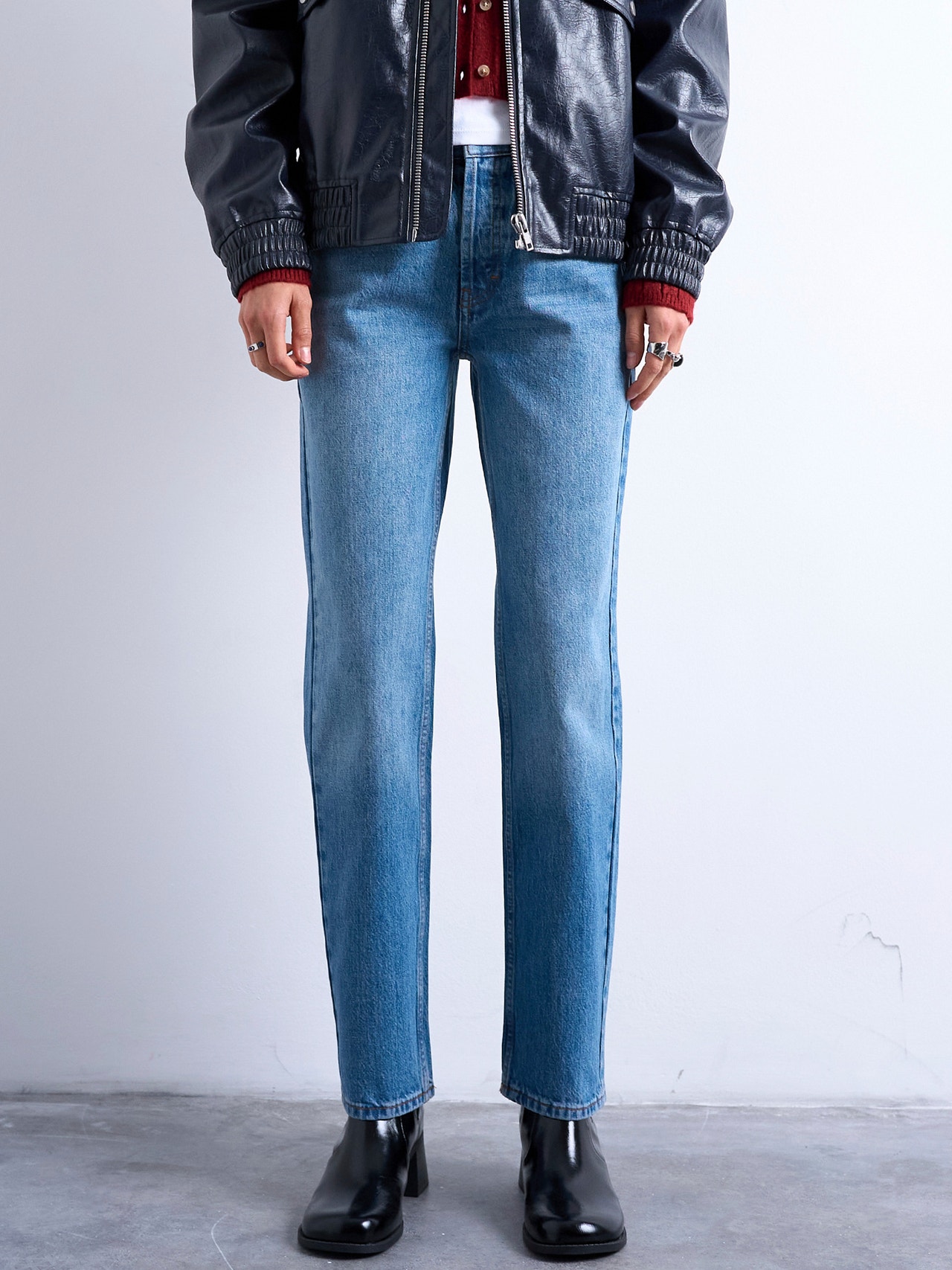 Straight Fit Jeans sind ein echter Klassiker – mühelos vielseitig und einfach zu stylen. Kombinieren Sie sie mit einer ausgefallenen Bikerjacke oder einem zeitlosen Mantel. Kombinieren Sie sie mit einem schicken Blazer für die Arbeit oder lässig für das Wochenende mit einem Oversize-T-Shirt und Flip-Flops.