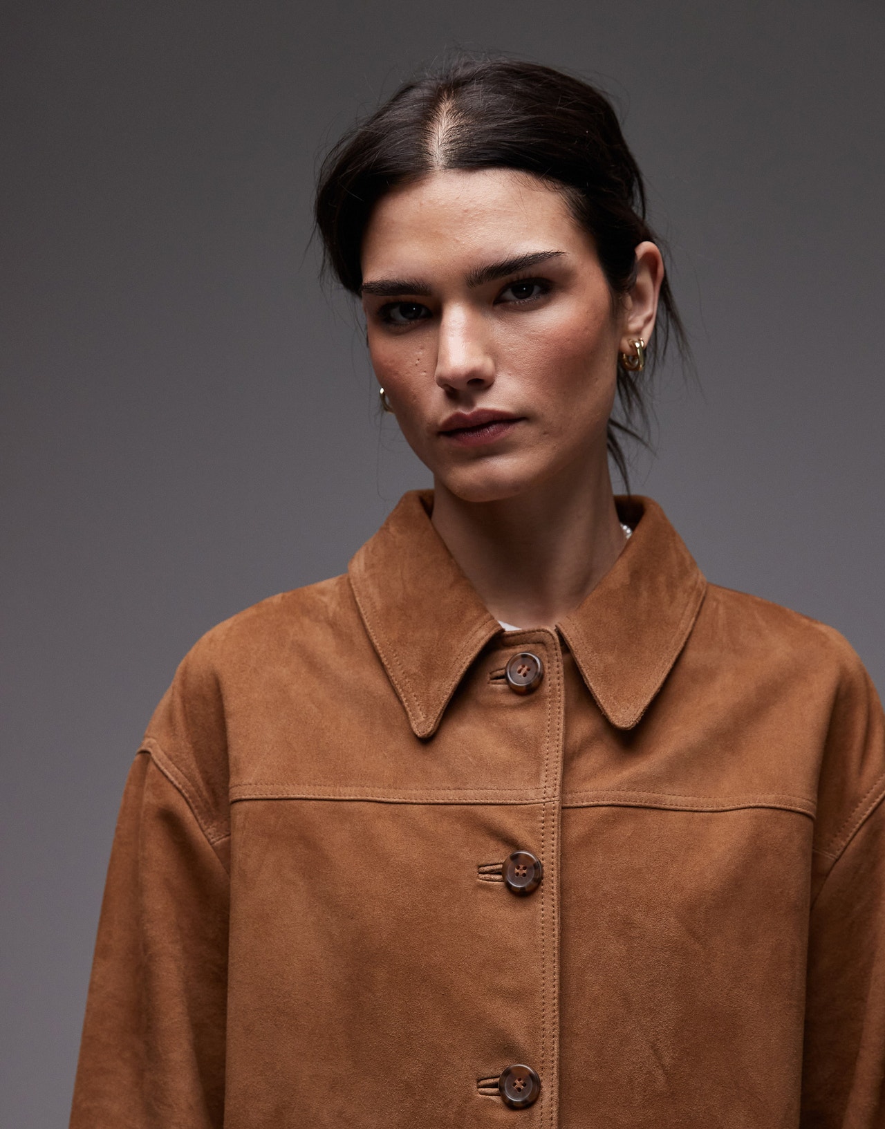 Topshop premium real suede patch pocket boxy jacket in tan - TAN