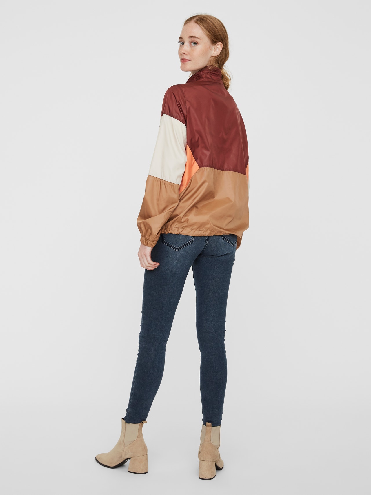 Hooded jacket with colour block detail, zip closure and drawstrings at the hood and hem. The jacket has one large pocket with press button closure in the front. Style the jacket with jeans and sneakers for a casual everyday look.