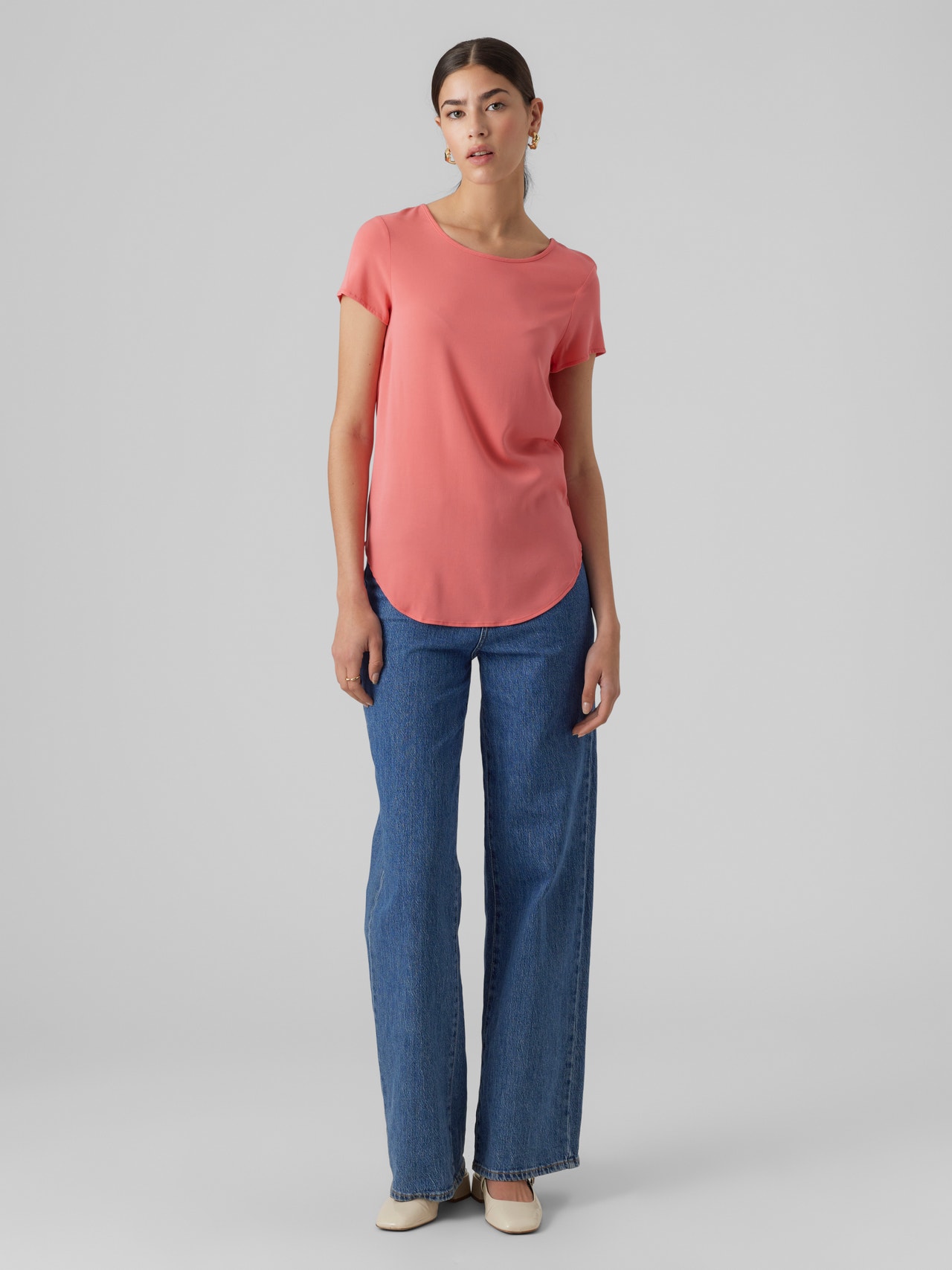 Basics are inevitable to find in almost every wardrobe out there. Our basic tops help bind an outfit together and this top makes no exception. Wear it with a shacket on top, a pair of relaxed mom-jeans, and chunky boots and you get a relaxed and cool everyday look.